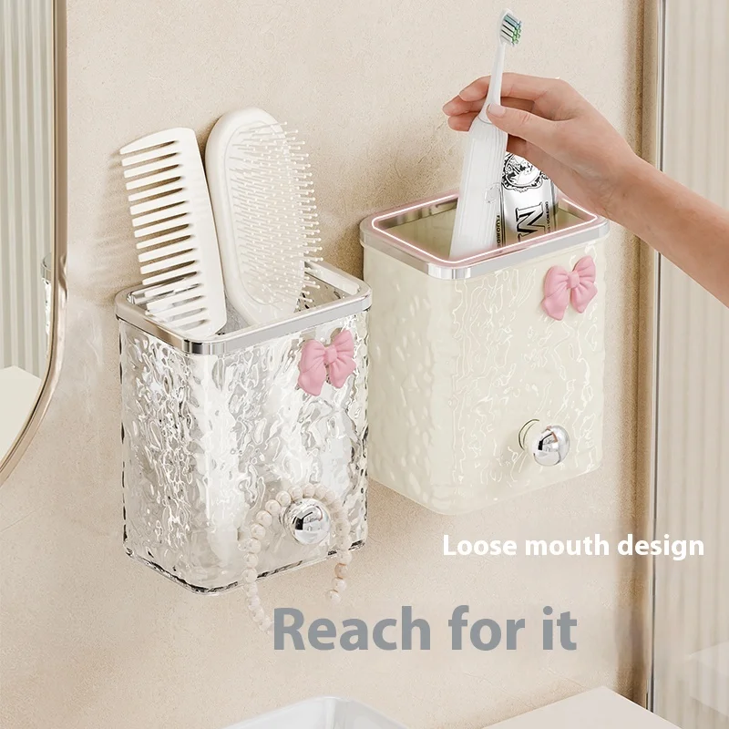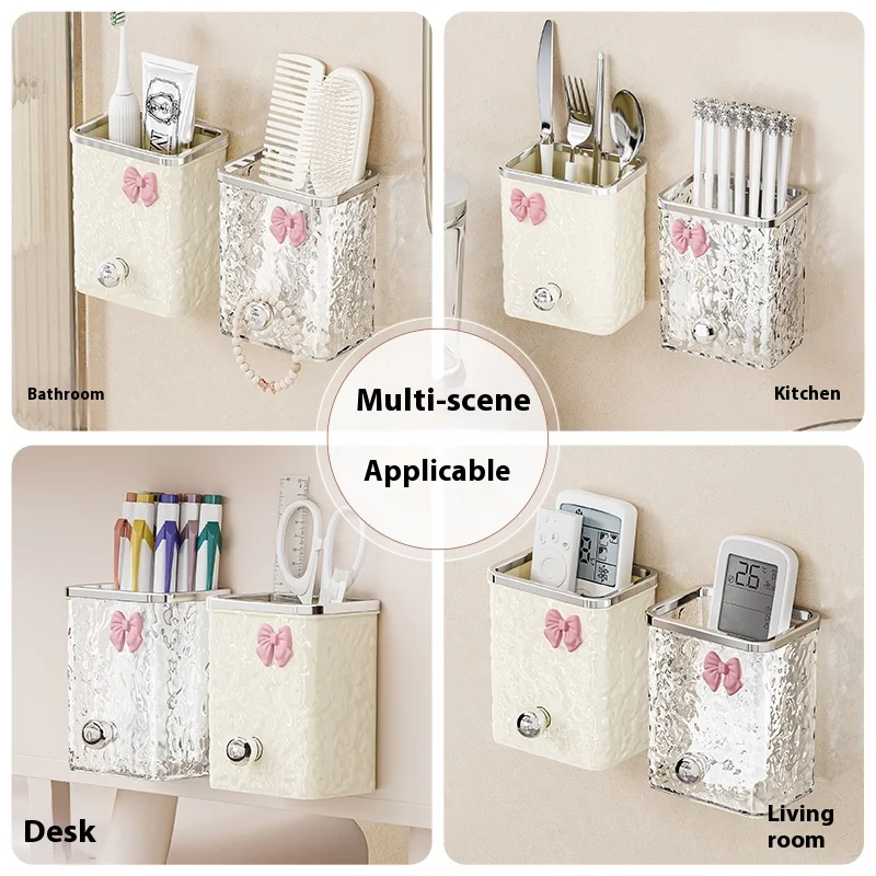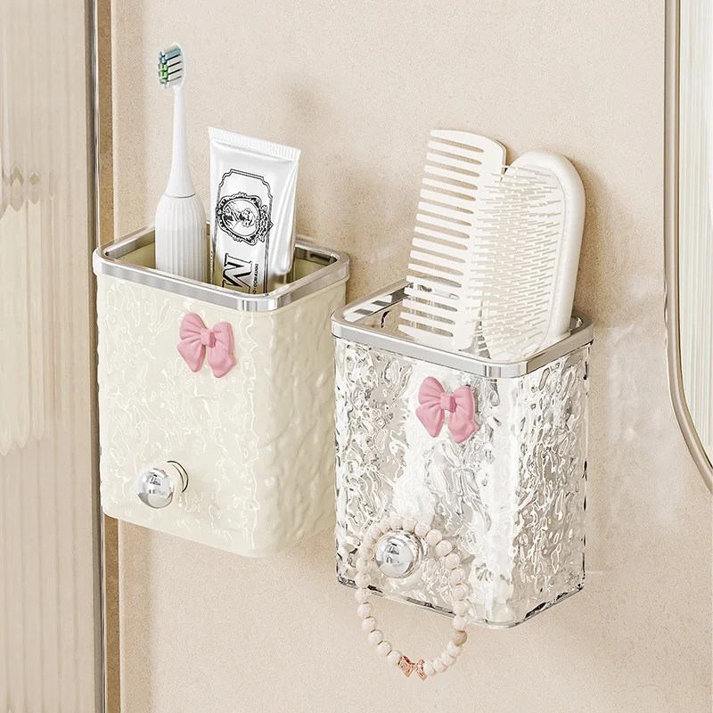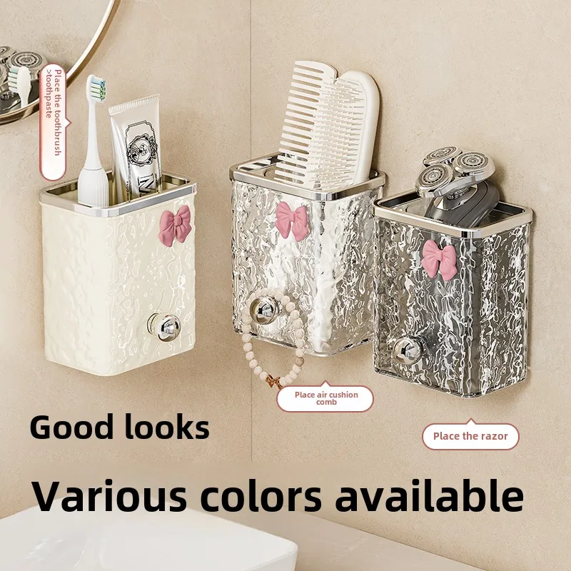 Modern Plastic Comb Rack Double Tiers Wall-Mounted Punch-Free Storage Tube for Toothpaste Toothbrush Razor Bathroom Sink Toilet
