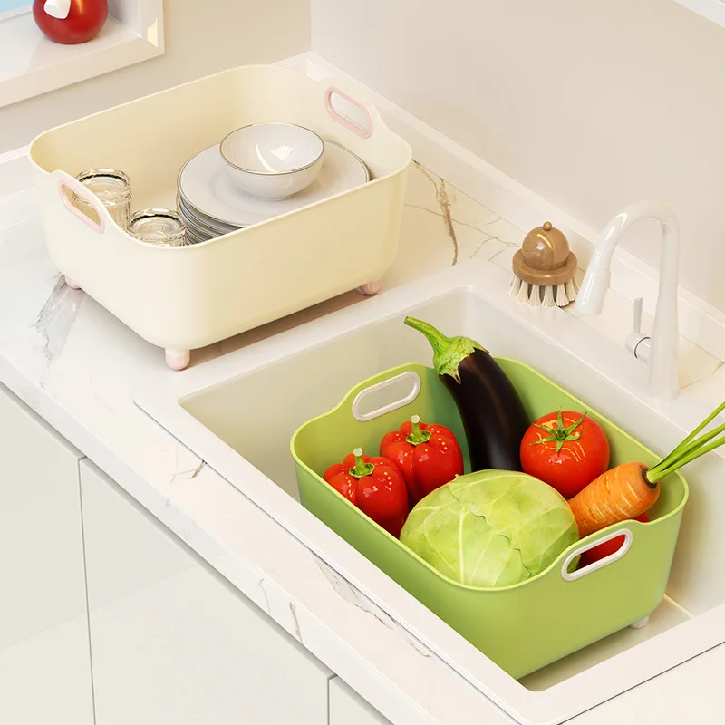 Modern Plastic Mobile Sink Vegetable and Fruit Washing Basin Large Dish Chopsticks Draining Basket Food-Use for Home Kitchen