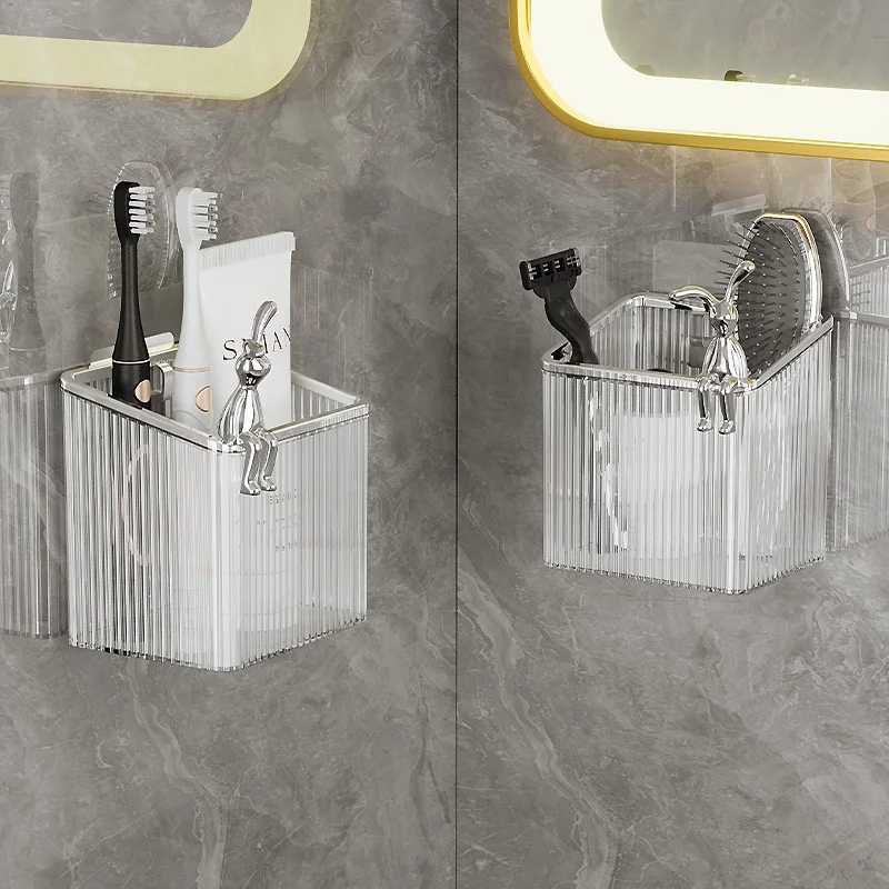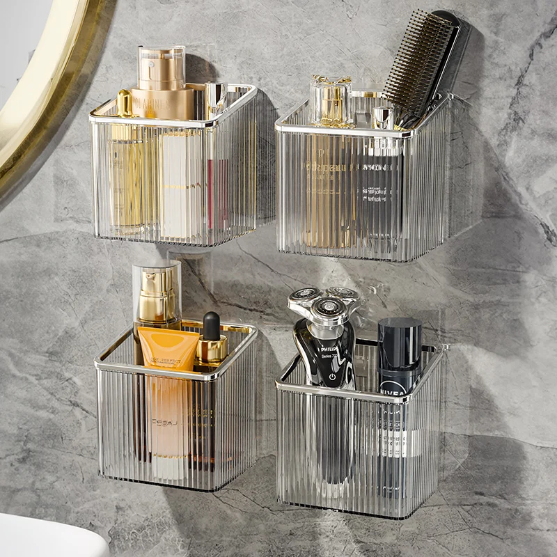Wall-Mounted Plastic Cosmetic Organizer Makeup Storage Box for Bathroom and Kitchen