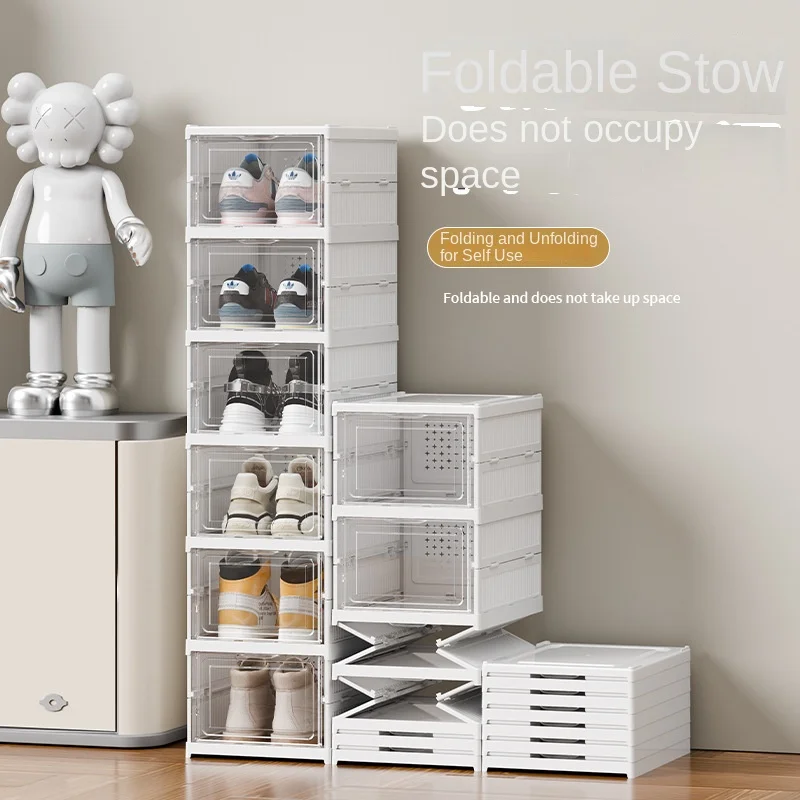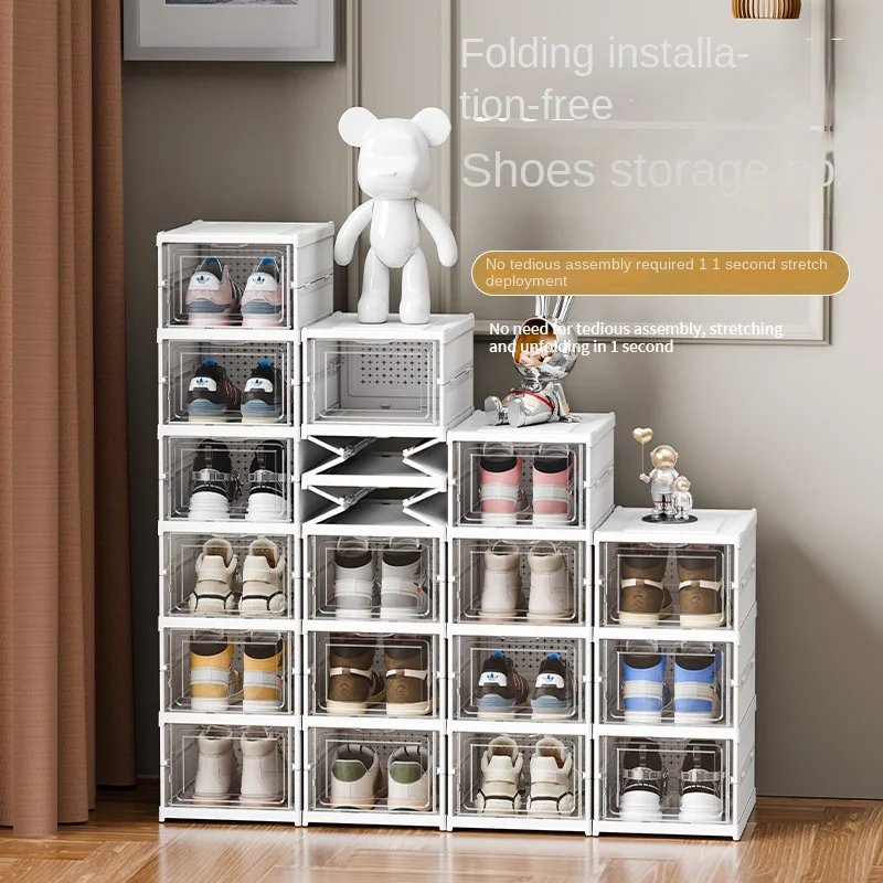 Foldable Shoe Cabinet Modern Transparent Plastic Shoe Storage Dustproof Installation-Free Foldable Shoe Box for Household