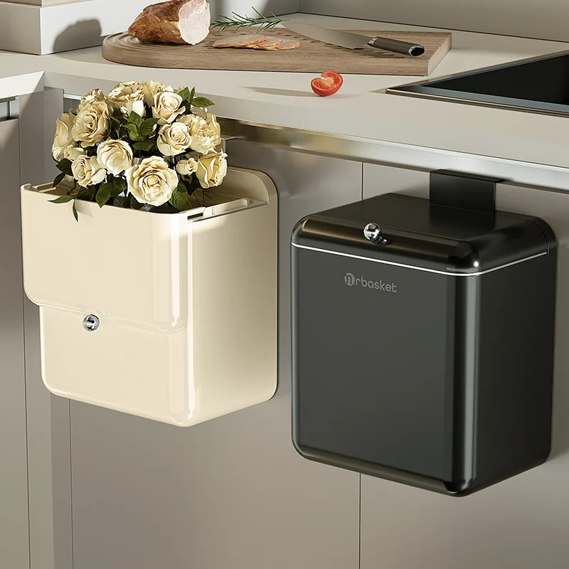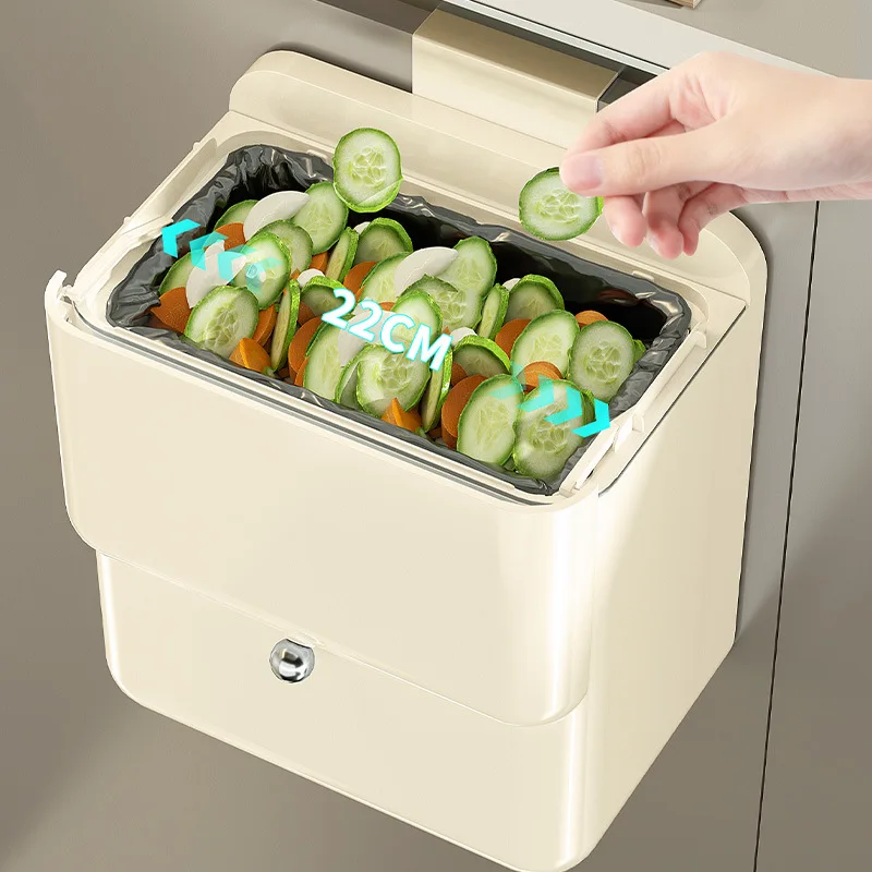 Wall-Mounted Kitchen Trash Can with Lid Household Storage Bucket,Food Waste Bin for Kitchen