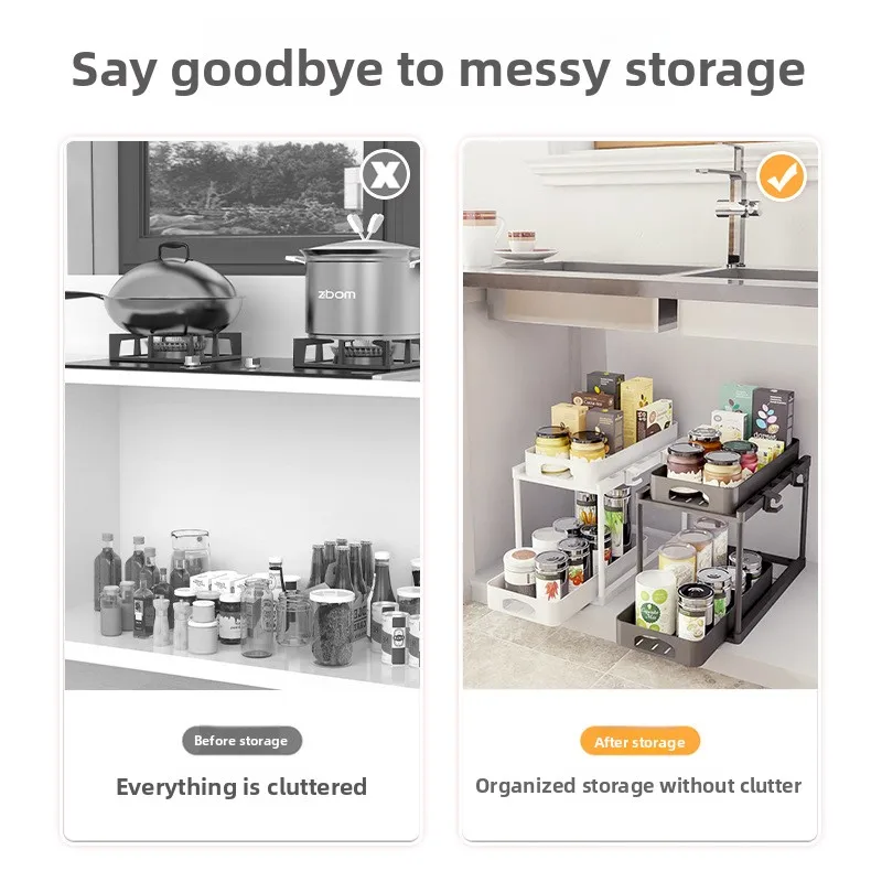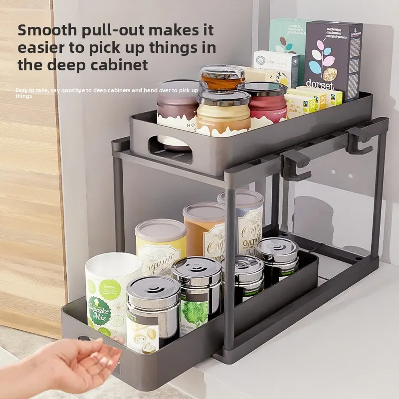 Multi-Functional Under-Sink Storage Rack Double-Layer Pull-Out Spice Storage for Kitchen