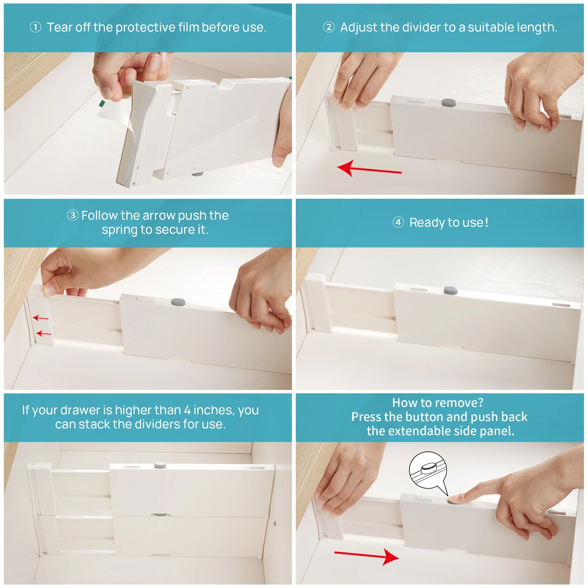 Plastic Combination Storage Box Organizer Kitchen Drawer Telescopic Partition Board Universal Wardrobe Baffle for Organizing