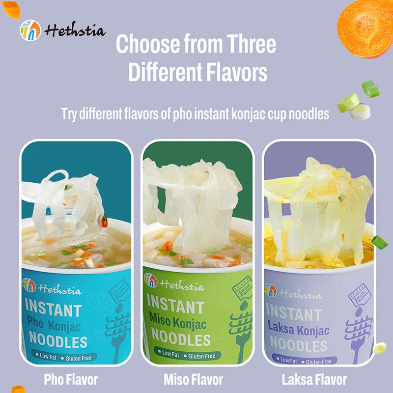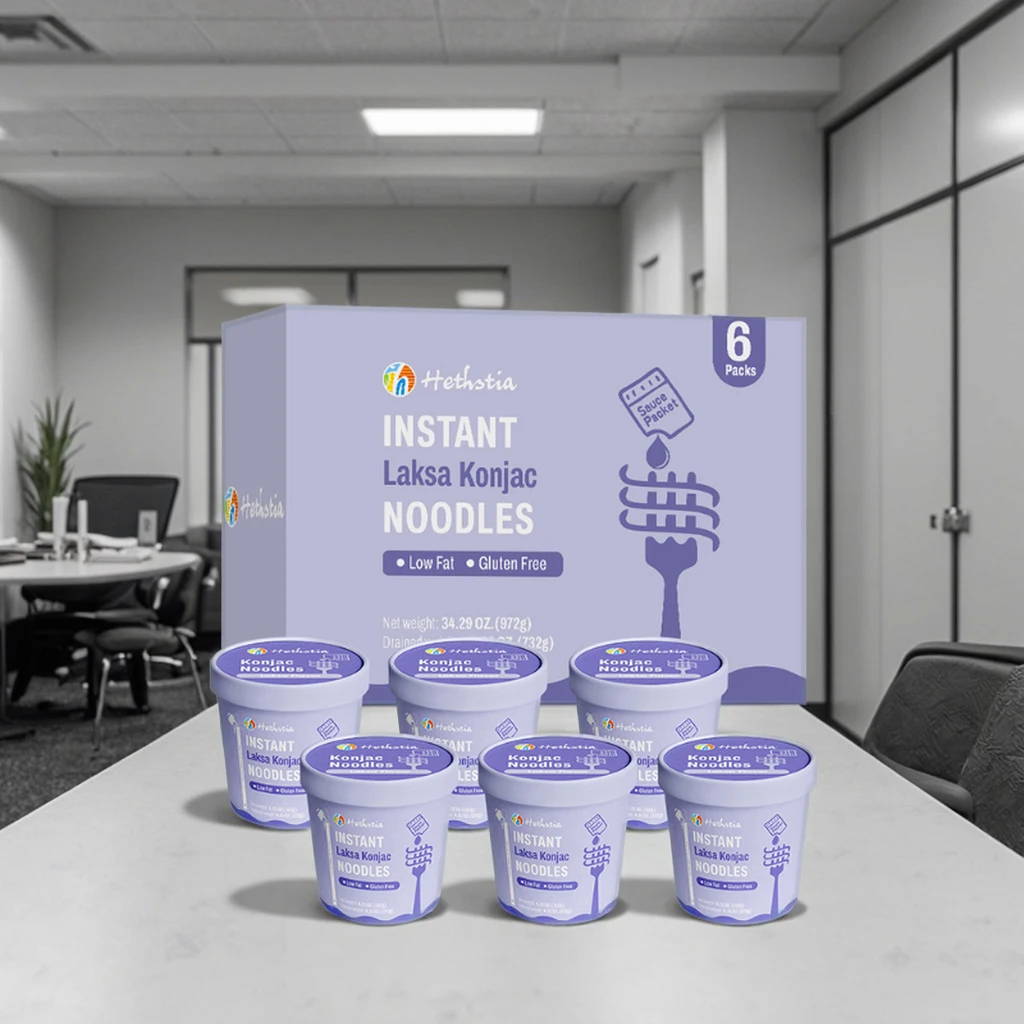 Low Calorie Laksa Konjac Noodles Gluten-Free Vegan Pasta Alternative in Instant Style for Healthy Meals Box Packaging