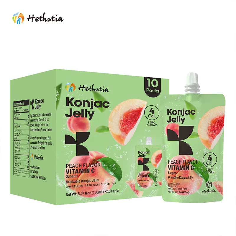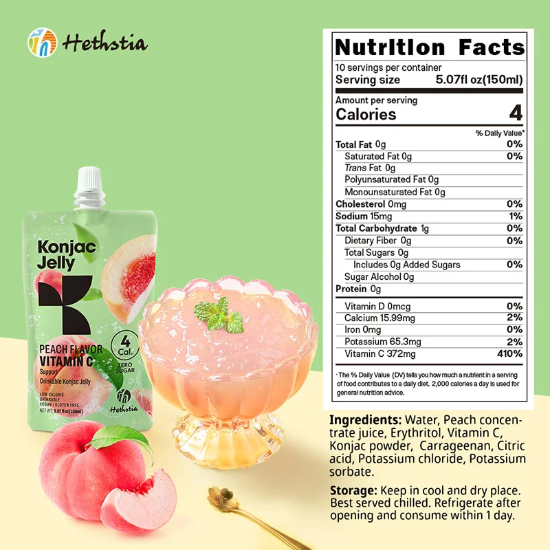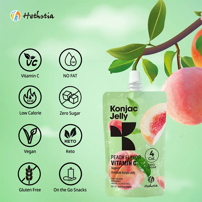 Sugar Free Snacks Zero Fat No Perservatives Non-GMO Low Calorie Vegan Friendly Shirataki Peach Jelly