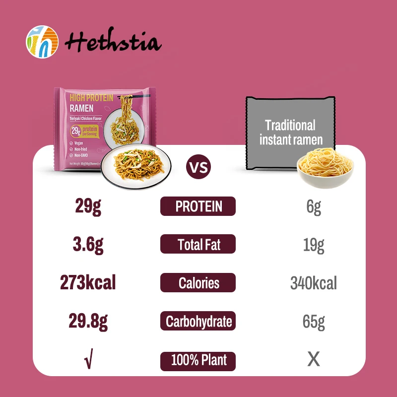 Vegan High Protein Ramen Teriyaki Chicken 29g Protein Non GMO Air Dried Noodles