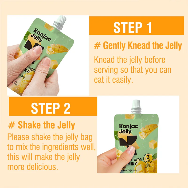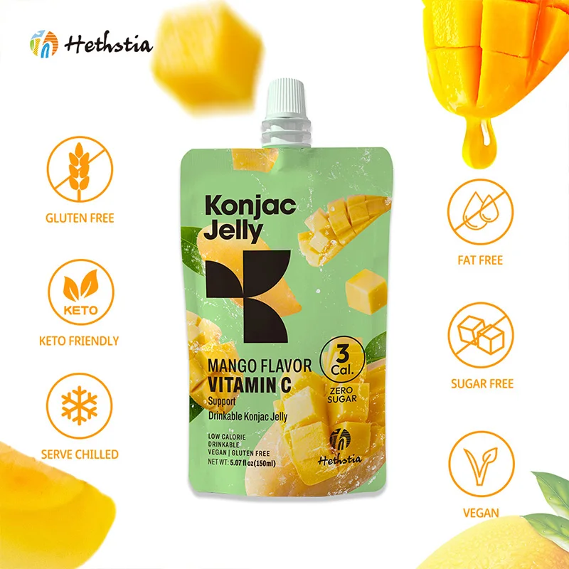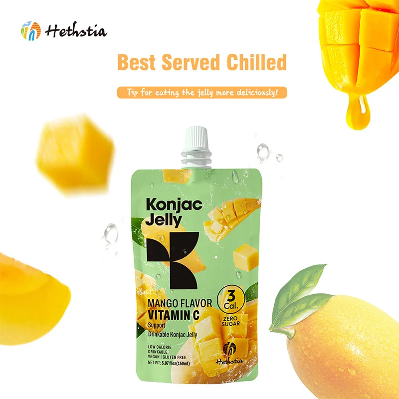 Slim Thin Healthy Fruity Orange Fruit Shirataki Jelly Spout Bag Private Label Gluten Free Low Calorie Konjac Jelly