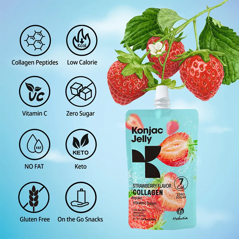 Keto-Friendly Low Fat Strawberry Konjac Jelly Drinkable Jelly with Collagen Peptides Fruity Flavor in Bag Packaging