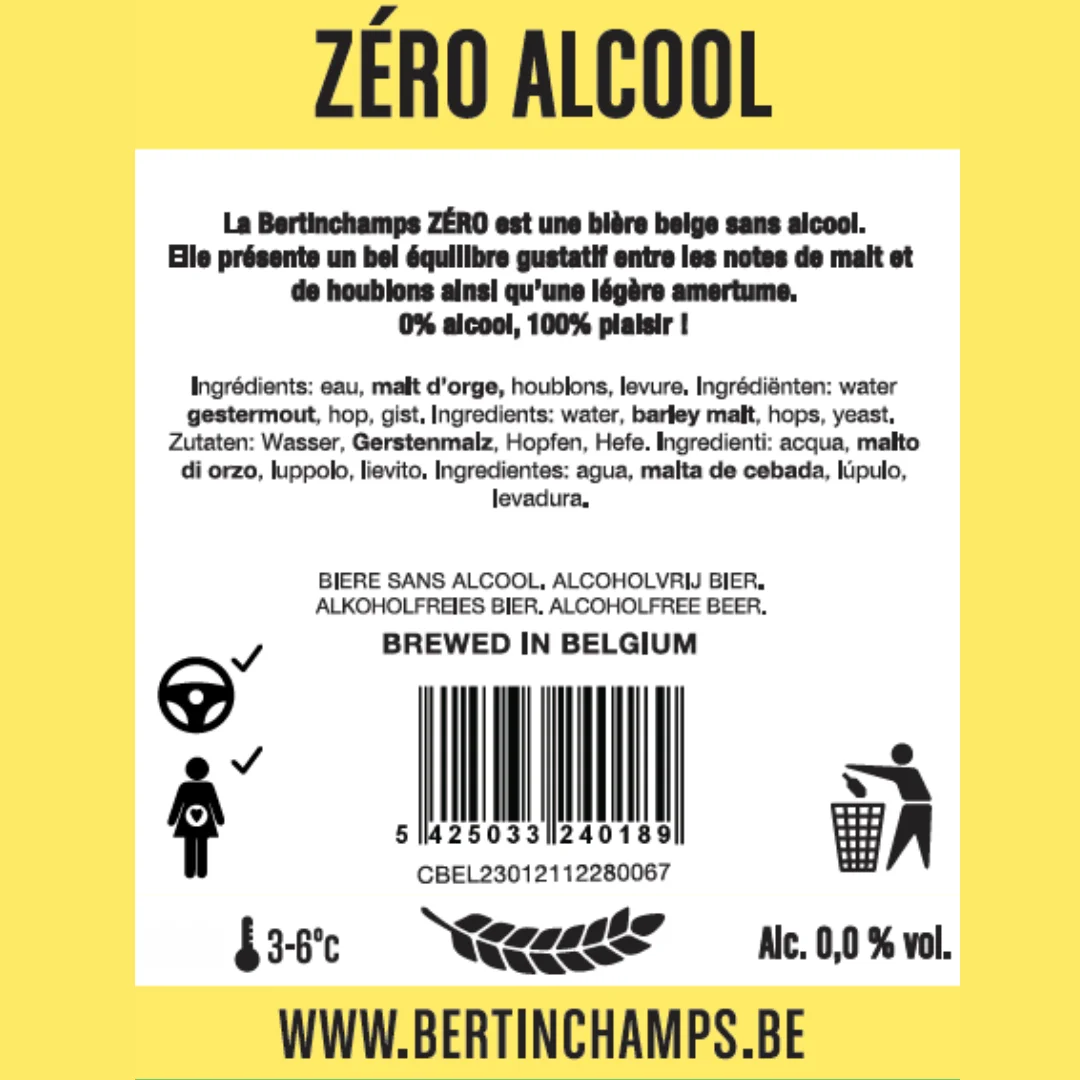 Non Alcoholic Halal Certified Beer Bertinchamps 20L Zero Alcohol High Fermentation Beer Keg Dry Dark Storage Belgium Brewery