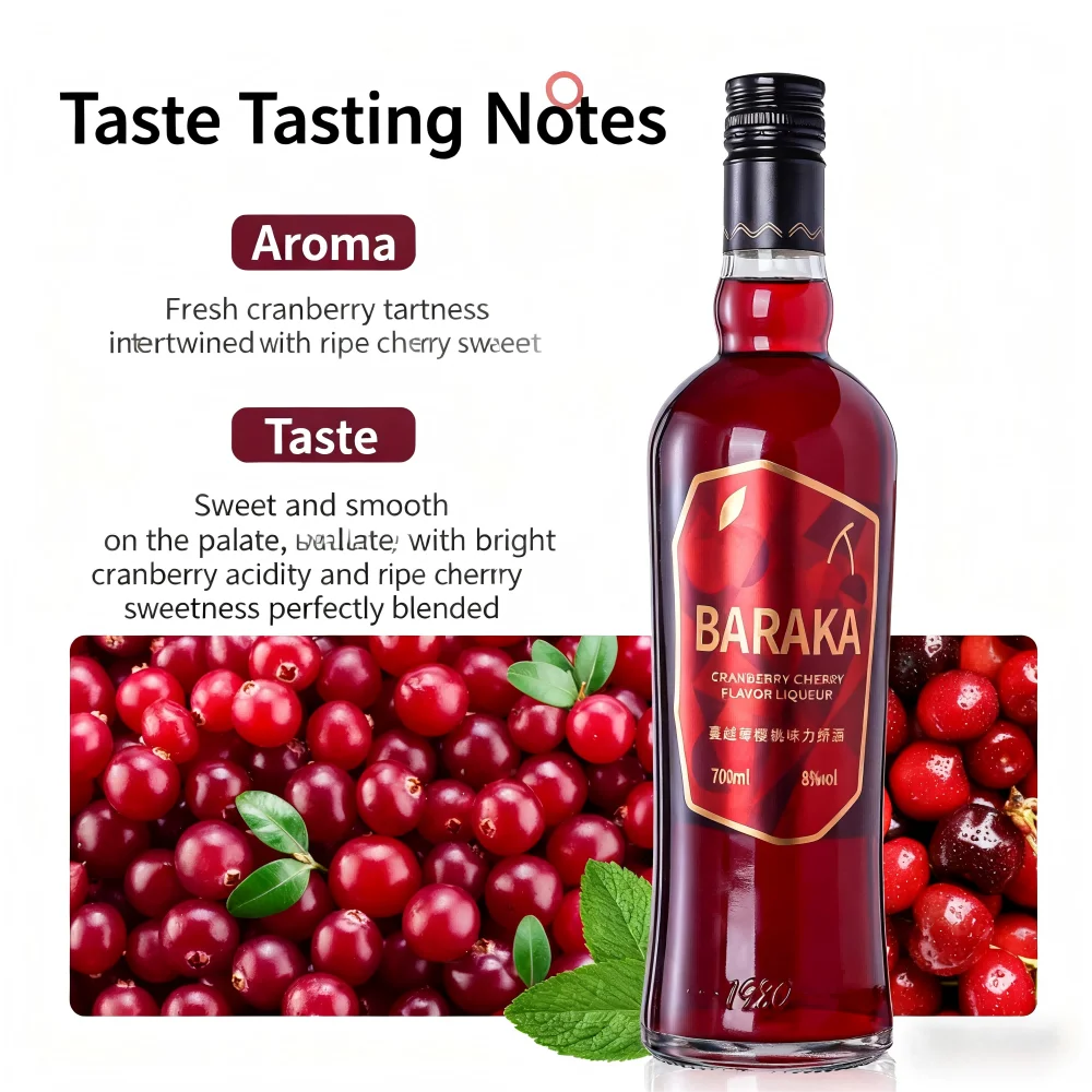 Bulk Cranberry Cherry Liqueur 700ML 8% ABV Bottle FASTKING Brand 12 Bottles B2B ODM Custom MOQ50 China Factory Bar Caf