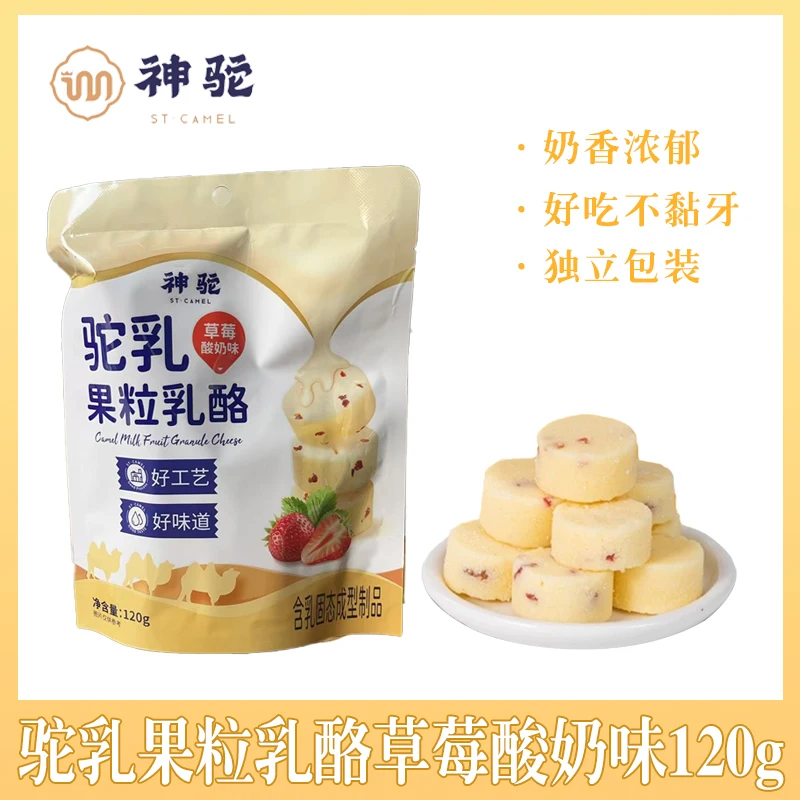 Shentuo Inner Mongolia Alxa Camel Milk Cheese Strawberry & Yogurt Flavored Snack Food 120g China