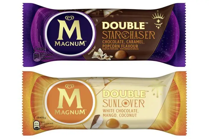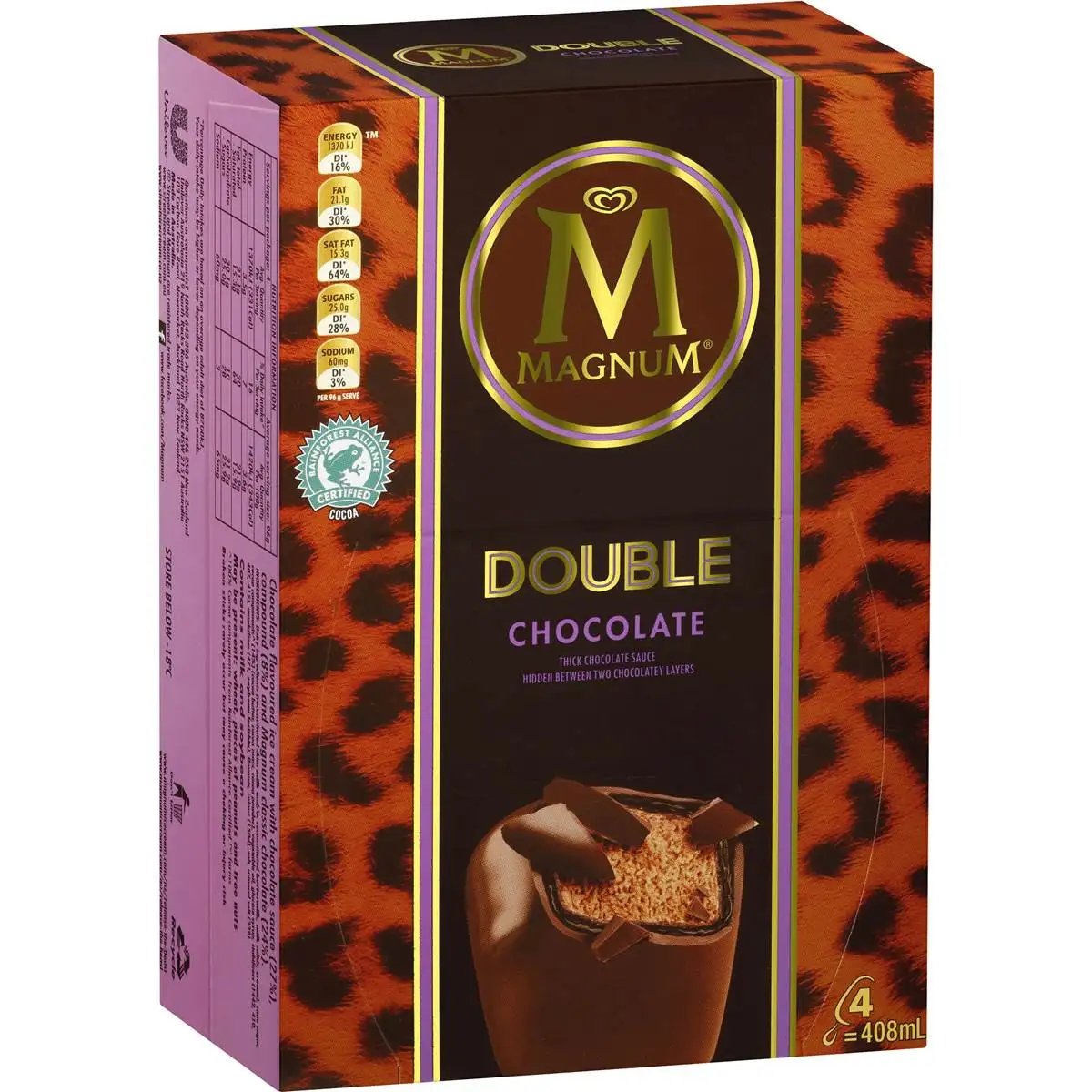 Double Chocolate and Ganache Ice Cream Tub Magnum Double Gold Caramel Ice Cream Sticks 3x85ml