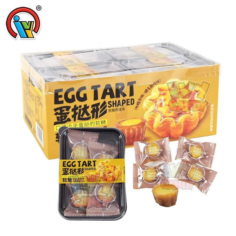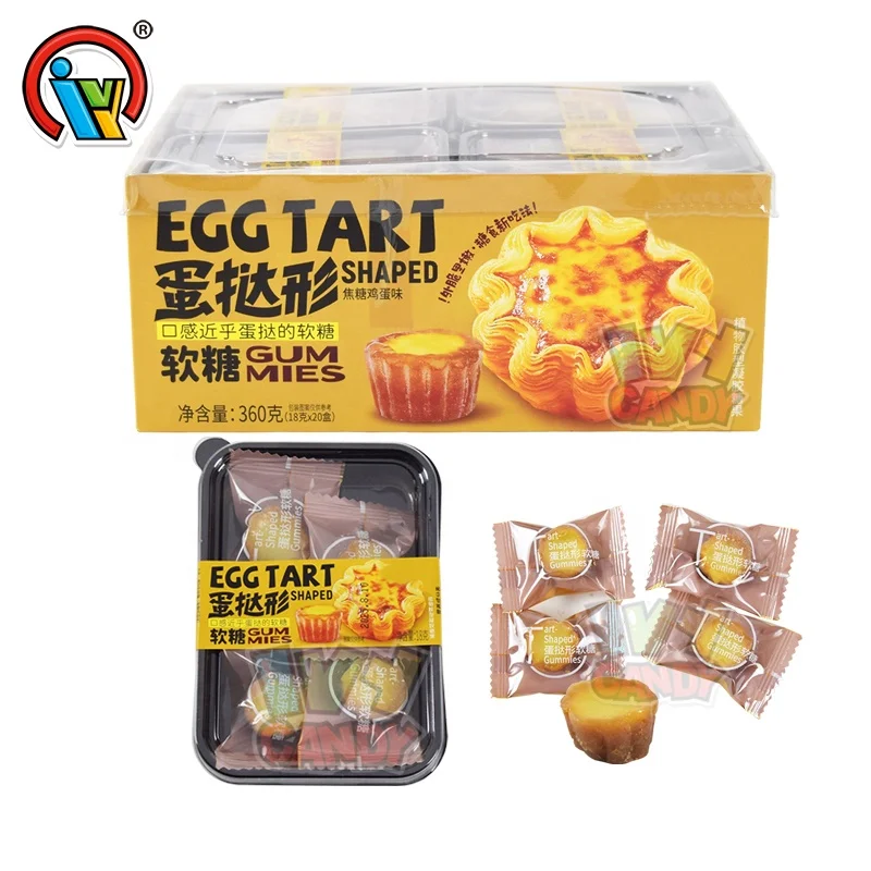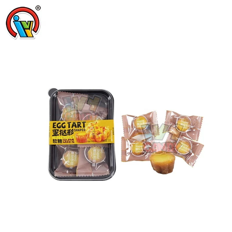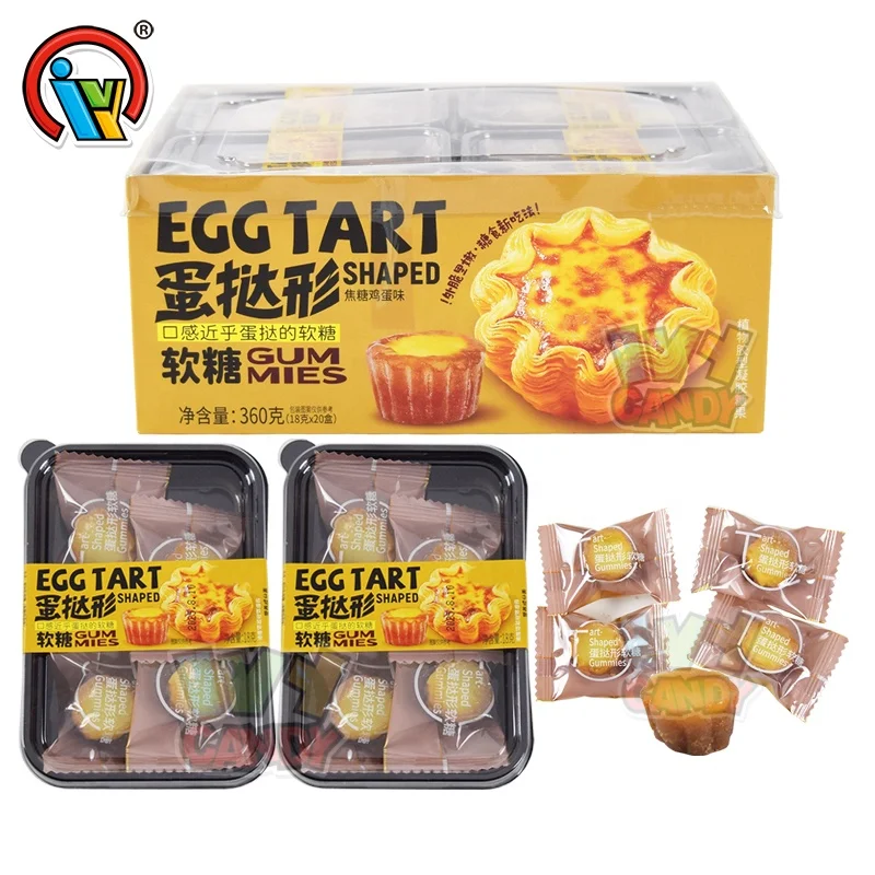 Creativity Crispy Egg Tarts Shape Sweet Soft Chewy Candy Caramel Egg-flavored Gummy Candy