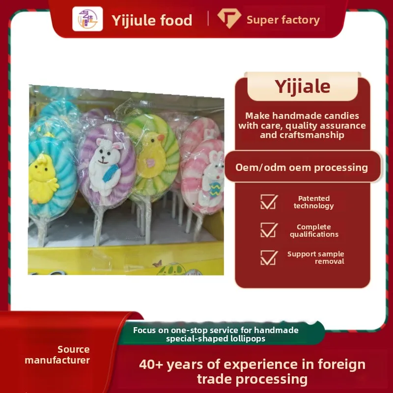 Custom Easter Fruit Hard Candy Animal Lollipop Sour Sweet Internet Celebrity Snack for Children's Day Cartoon Holiday Export