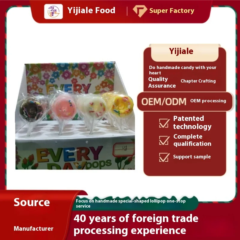 Customized 15g Donut-Shaped Lollipop Hard Candy for Children's Day Soft & Sweet Wholesale Cartoon Holiday Gift Export-Friendly