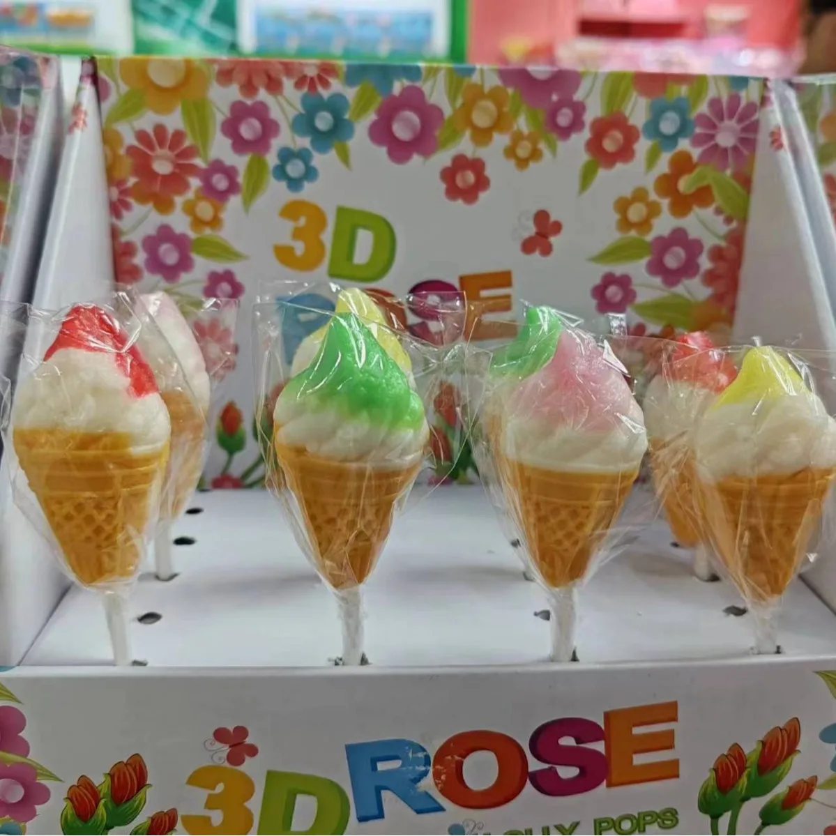 Custom Children's Day Fruity-flavored Hard Candy in Ice Cream Lollipop Shape Decorated Packed in Box Perfect for Gifts Snacks