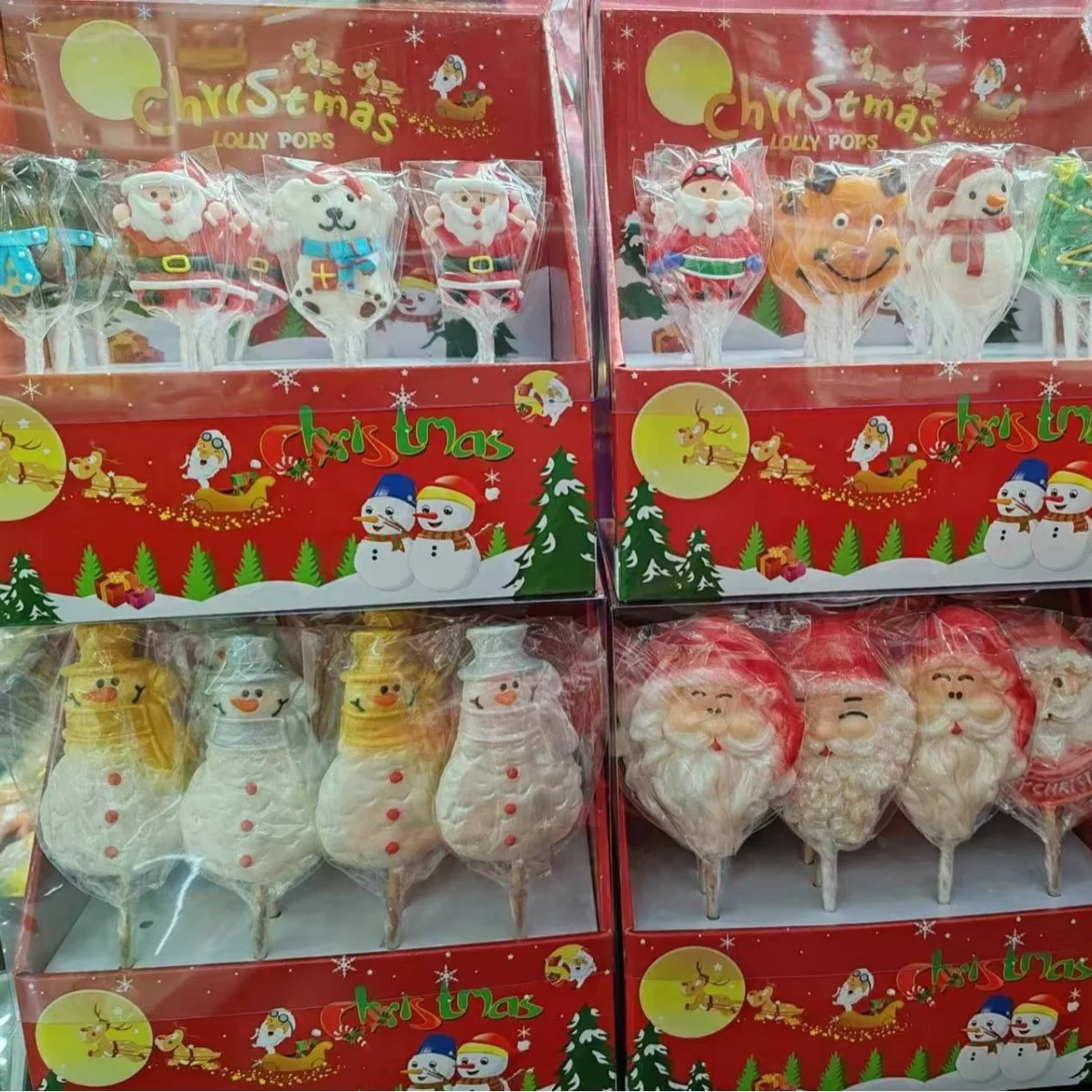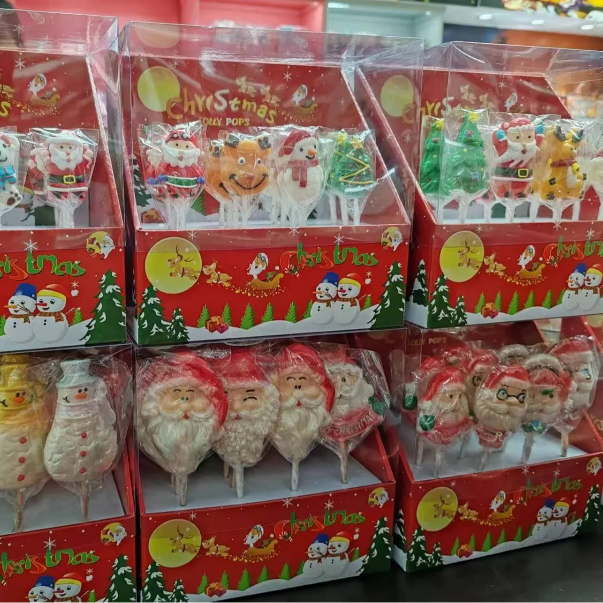 Christmas Cute Cartoon Shaped Lollipop Multi-Flavor Internet Celebrity Leisure Snacks Fruity Taste Holiday Gift in Box Packaging