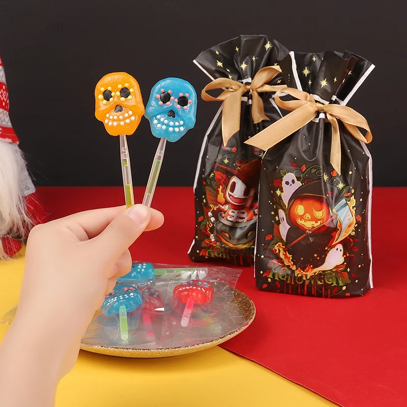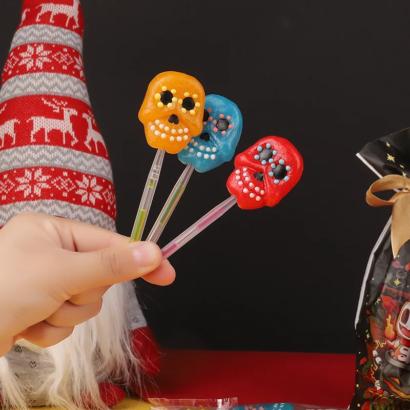 Halloween Skull Creative Lollipop Multi-Flavor Hard Candy Snacks Soft Sugar Cartoon Children's Holiday Gift Exports Halal