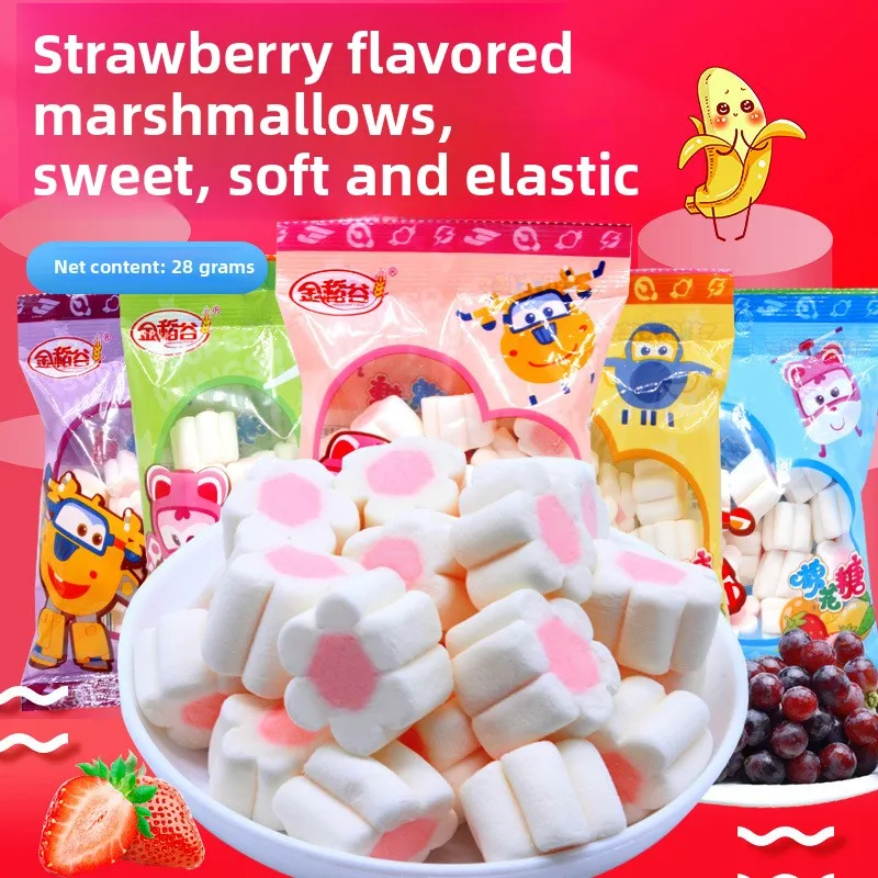 Kids' Marshmallow Fruit Flavored Gummy Snack Food Golden Rice Candy Coated Decorations Internet Celebrity Wholesale Bag