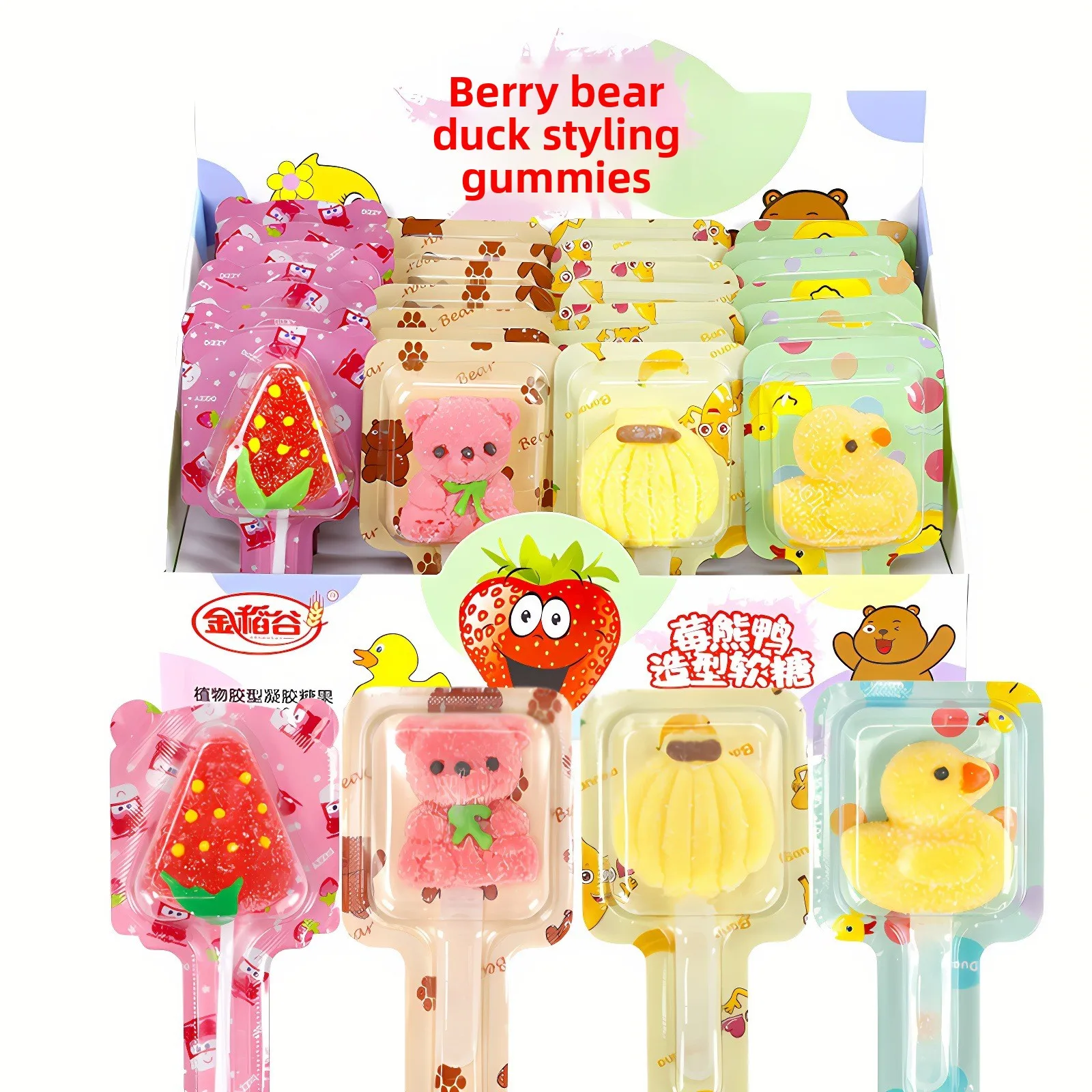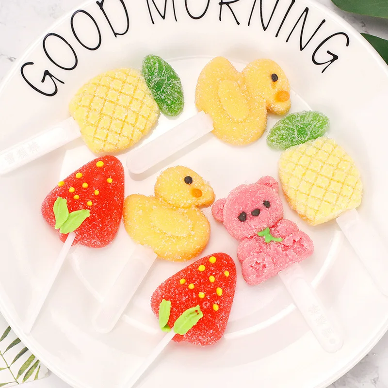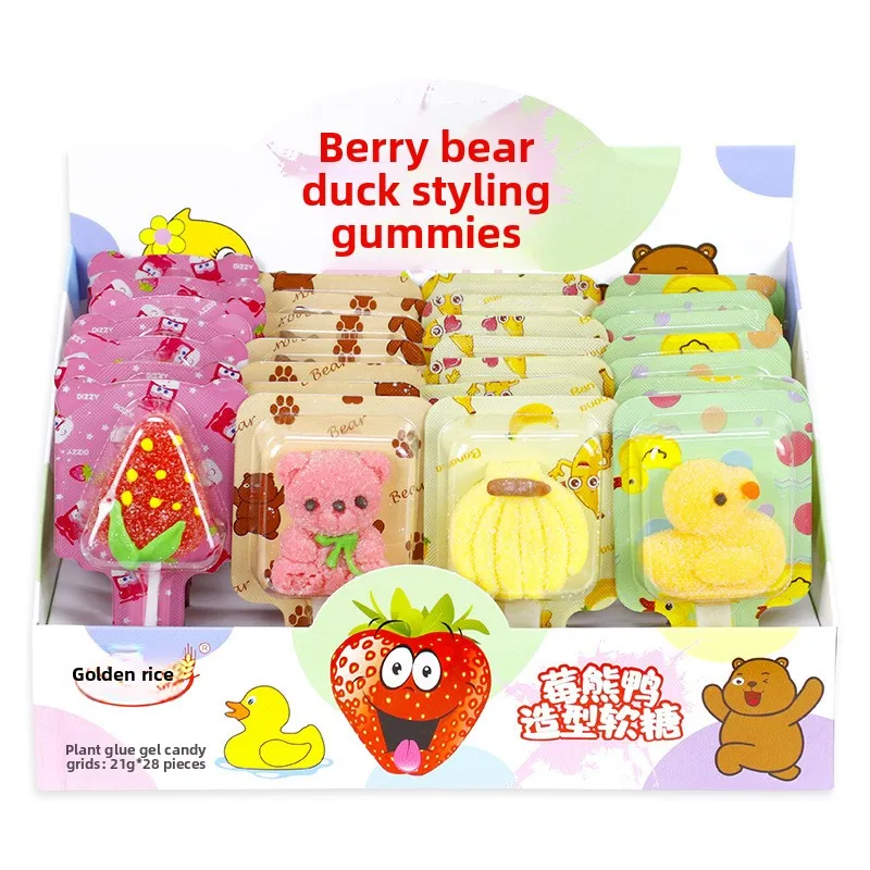 Cartoon Lollipop Little Yellow Duck Soft Fruit Candy Strawberry Bear Children's Snacks Coated Internet Celebrity Wholesale