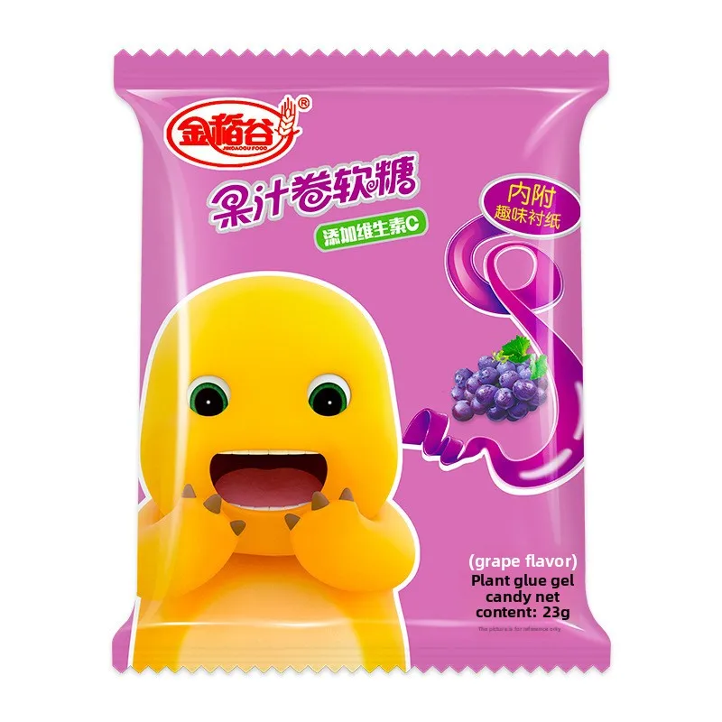 Milk Dragon Fruit Flavored Concentrated Juice Roll Candy Gummy Snack Food with Decorated Bag for Children's Wholesaling