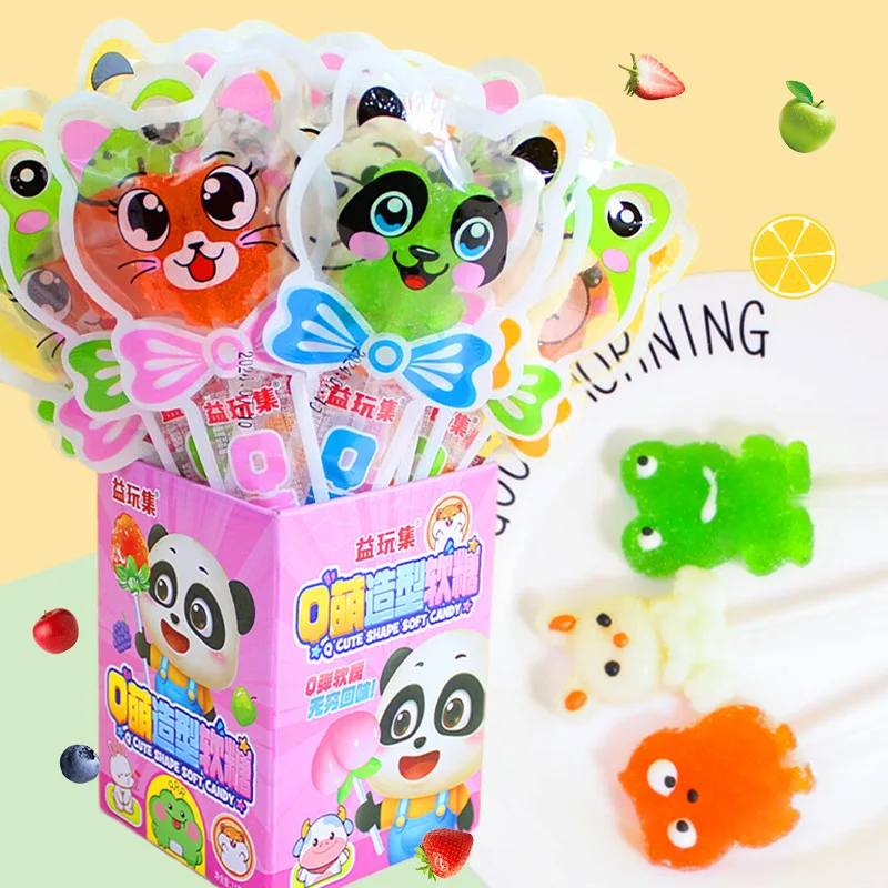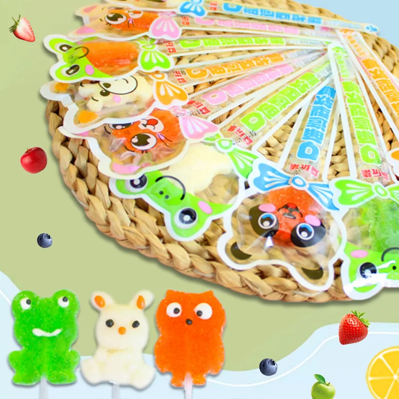 Adorable Cute Gummy Animal Fruit Juice Lollipops Fruity Flavored Children's Snacks in Coated Bag Wholesale Decorated Packaging