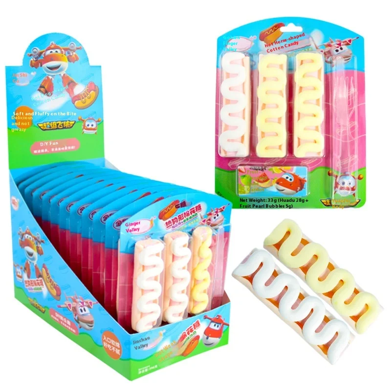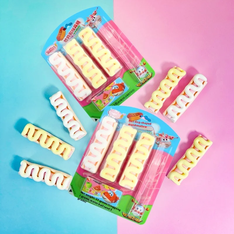 Super Wings Supermarket Sale Cute Children's Mint Flavored Marshmallow Bars Hot Dog Shape Casual Snacks Boxed Coated Wholesale