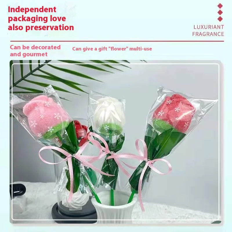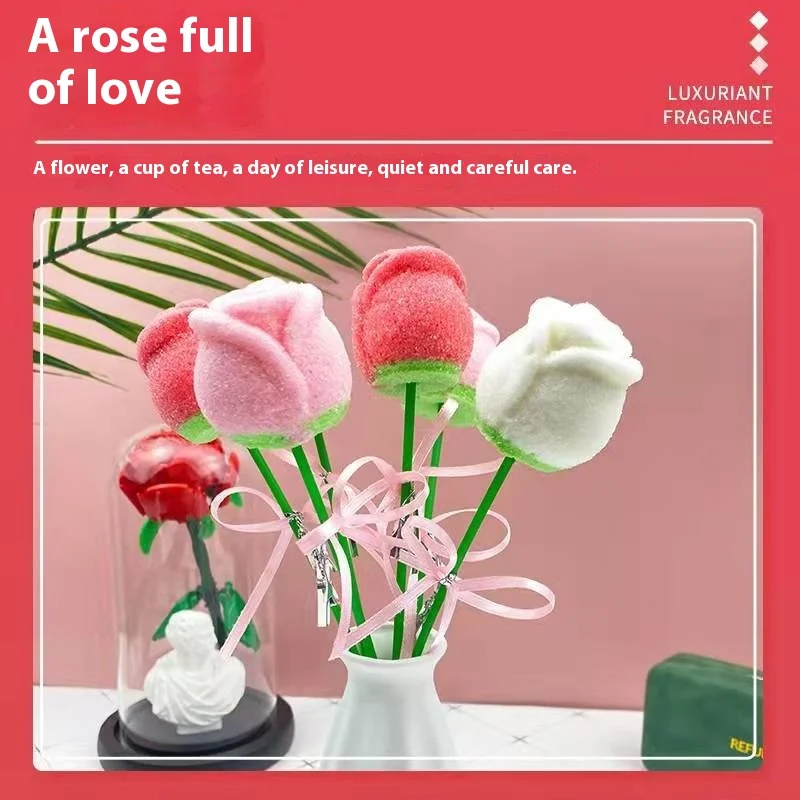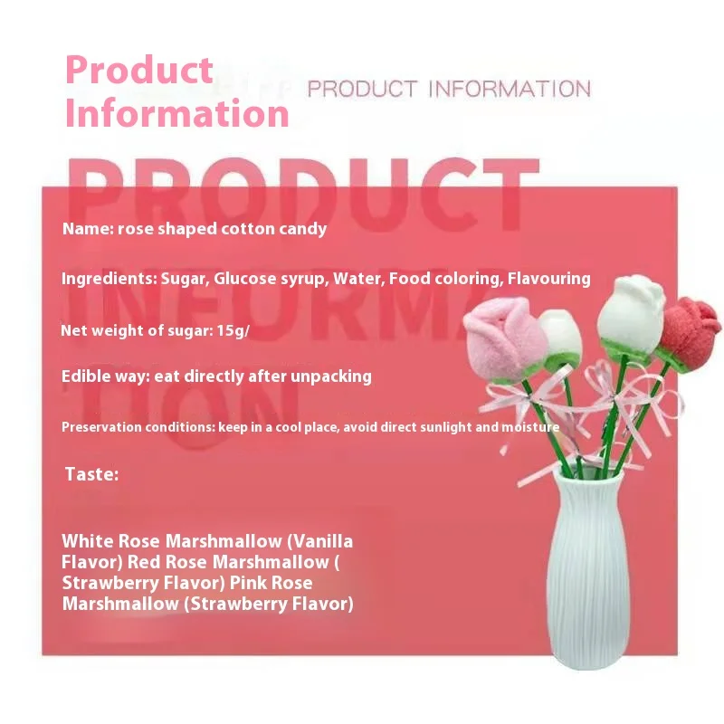 Kosher Certified Rose Shaped Cotton Candy Bouquet Fruity Coated for Valentine's Day Decorative Gift
