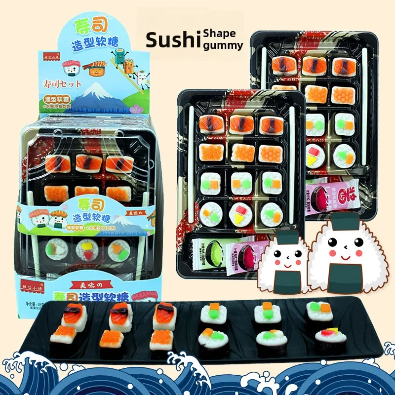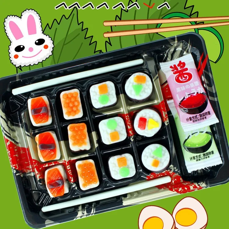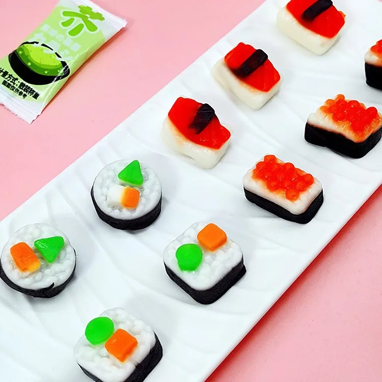 Wholesale Sushi Shaped Fruit Gummies Children's Snacks Soft Candy with Fruit Flavour Play with Coated Packaged Bags