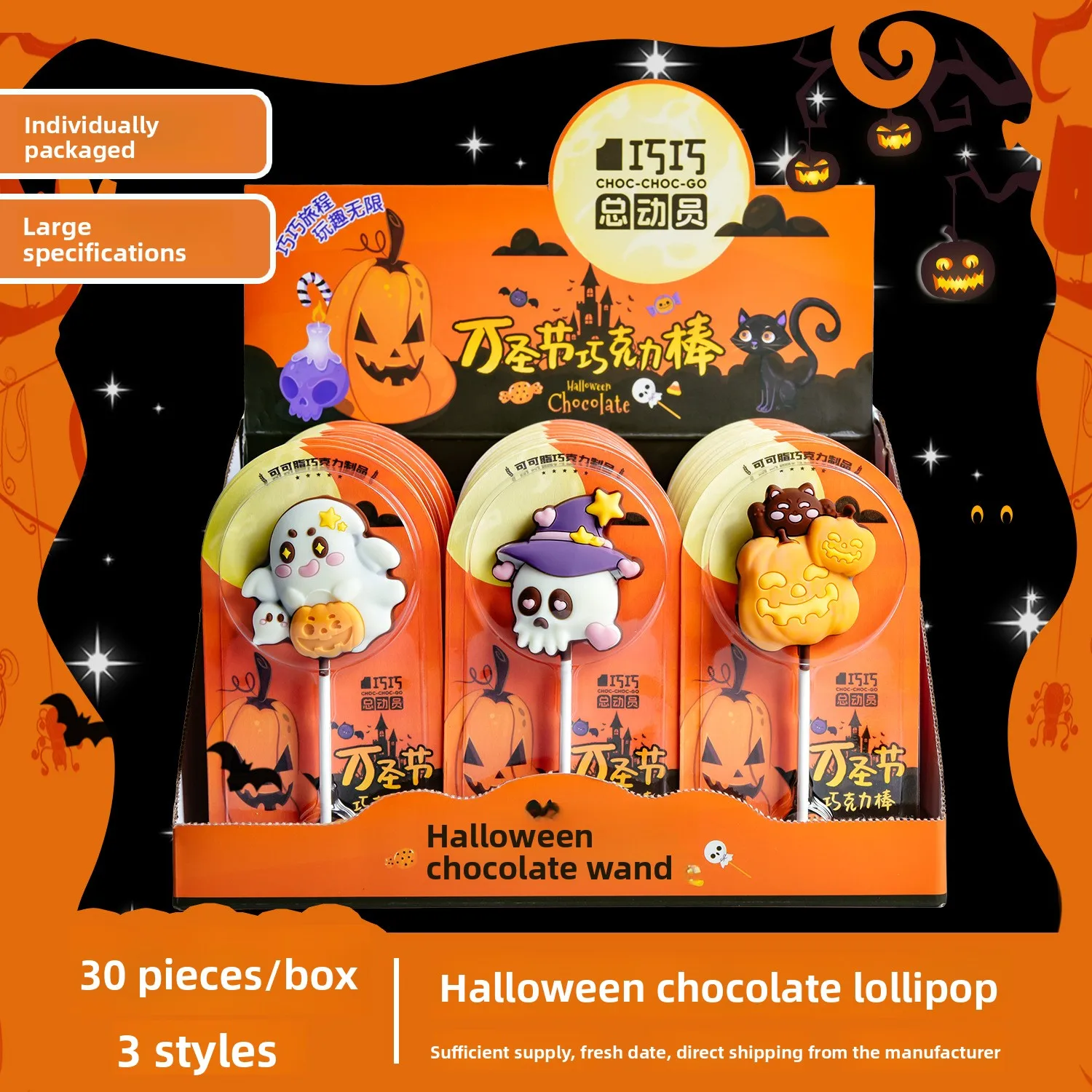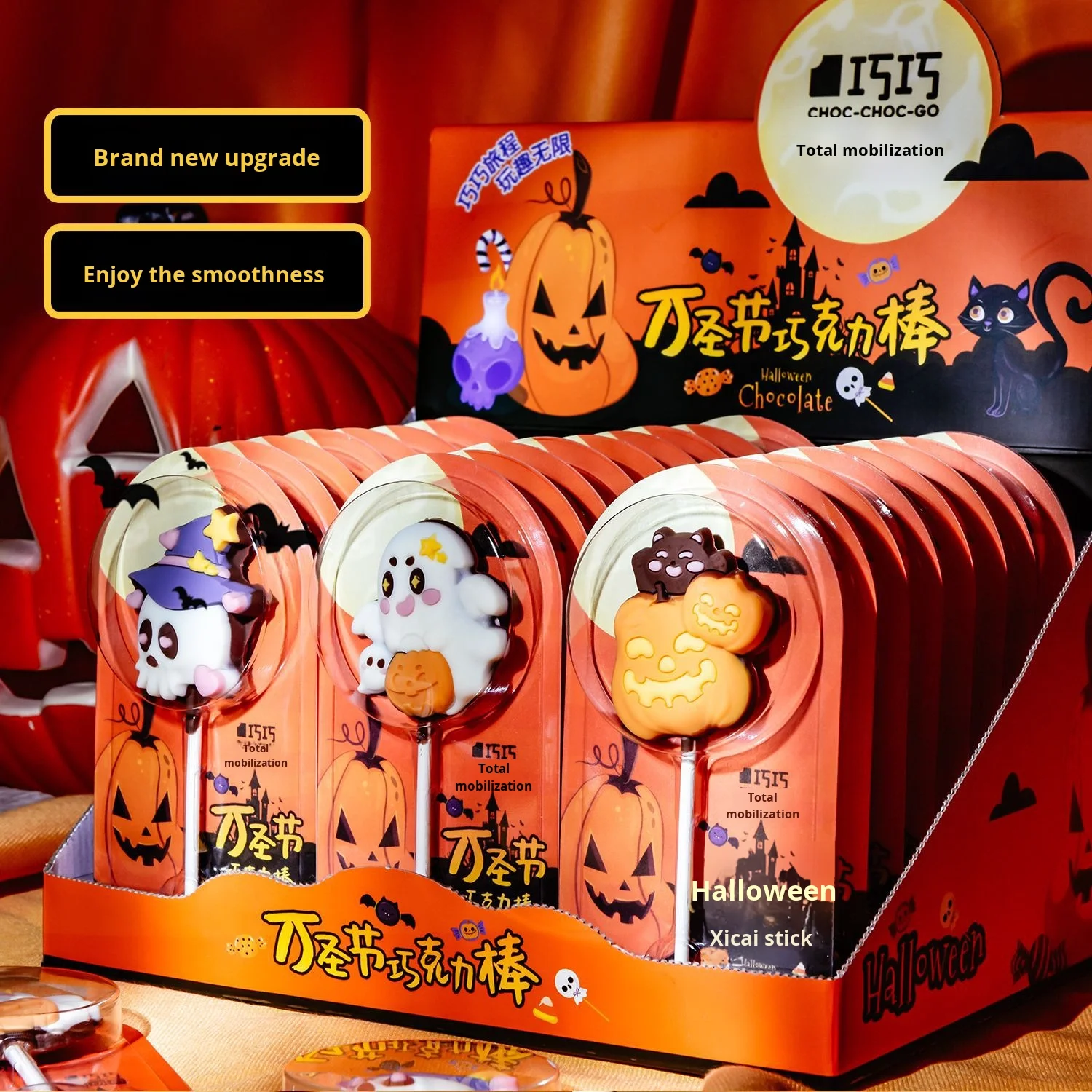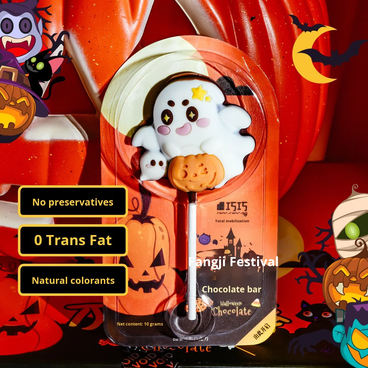 Halloween Chocolate Lollipops Hard Texture Pumpkin Ghost Head Snacks Star Stick with Bag Packaging Halal Certified Fruit Candy