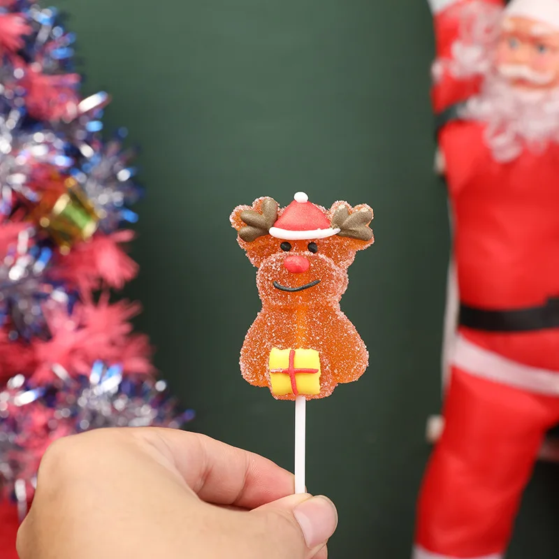 Christmas Bulk Gummy Snacks Gift Box High Color Assorted Flavored Santa Claus Lollipops Creative Stick Fruity Halal Certified