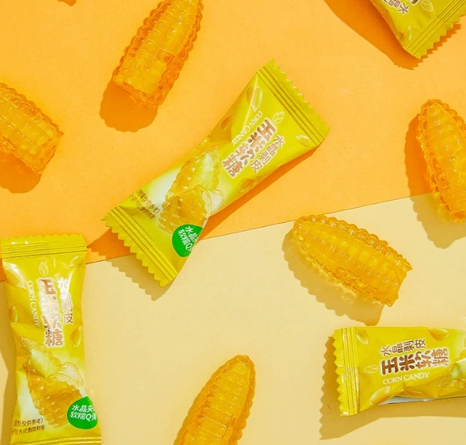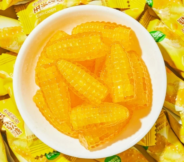 Coated Peelable Gummy Fruit Flavored Christmas Candy Sweet Corn Bulk Fruit Candy with Attractive Packaging