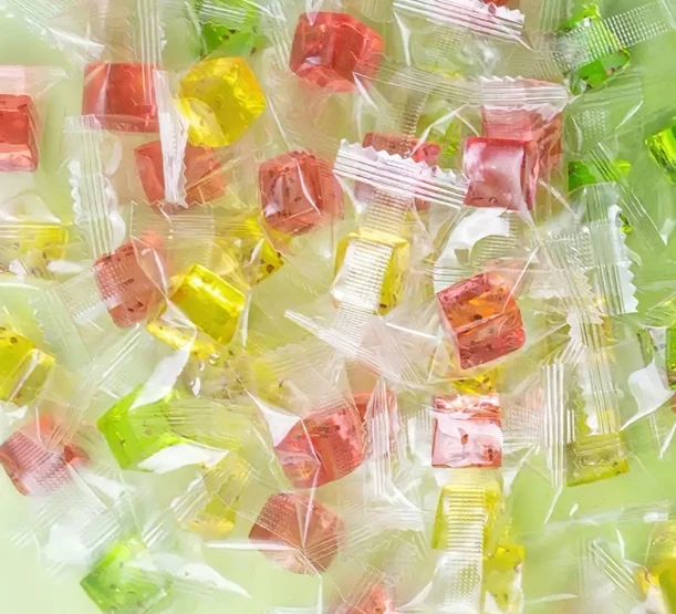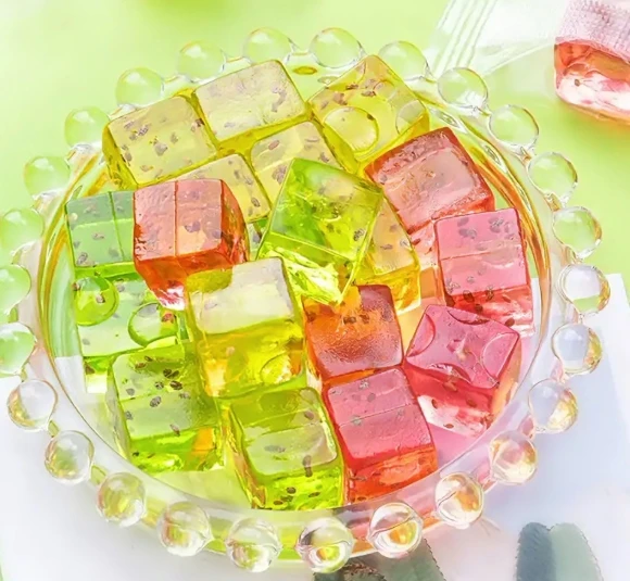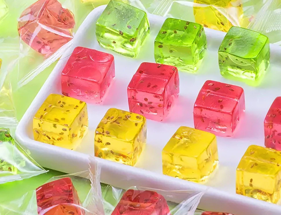 Acidic Fruit Cube Pattern Chia Seed Chewy Gummies Assorted Snacks in Sour Gummy Candies