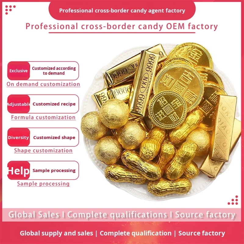 Chocolate Gold Bars and Ingots Hard Texture New Year Snacks with Coated Decoration Bulk Packaging