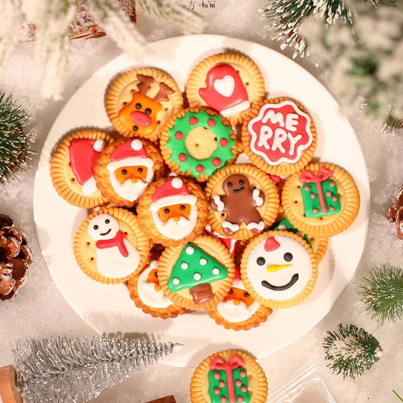 Cute Santa Claus Gingerbread Man Christmas Cookies Frosted Decorated Snacks Hard Texture Sweet Taste Bulk Packaging Wholesale