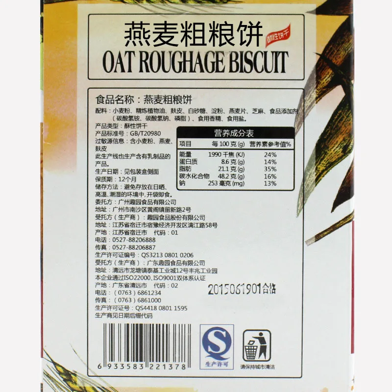 800g Family Gift Box Oatmeal Whole Grain Biscuits Sweet Taste Export Enterprise in Bag Packaging