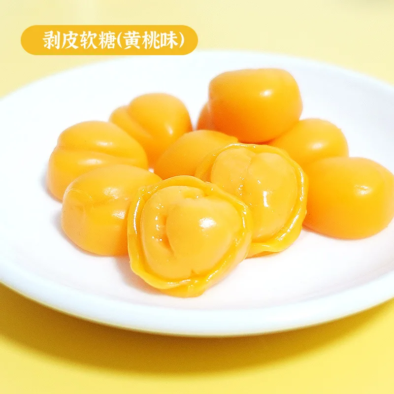 Yellow Peach Flavored Pealed Soft Candy QQ Rubber Candy Juice Fruit Fruitily Packaged in a Bag