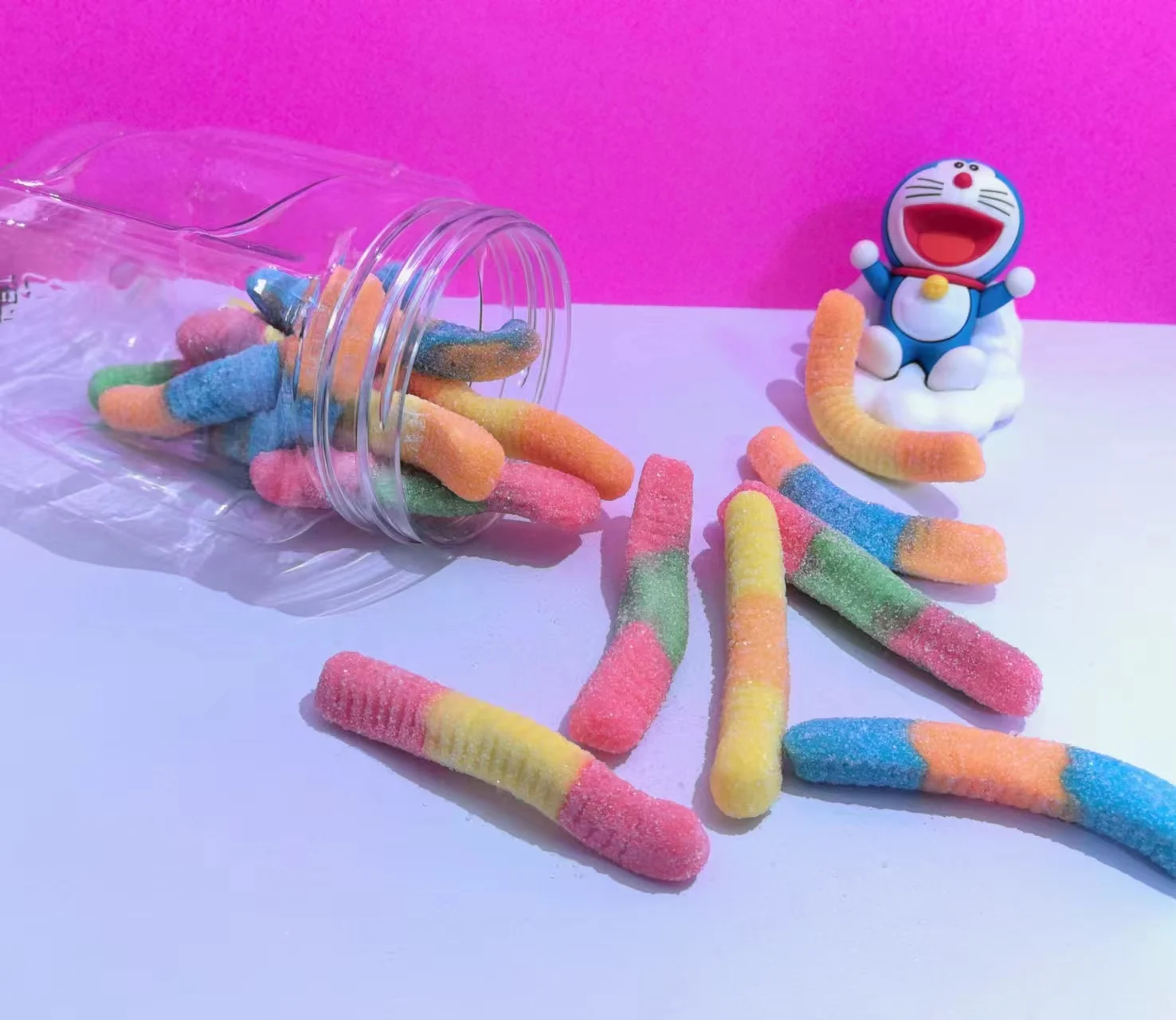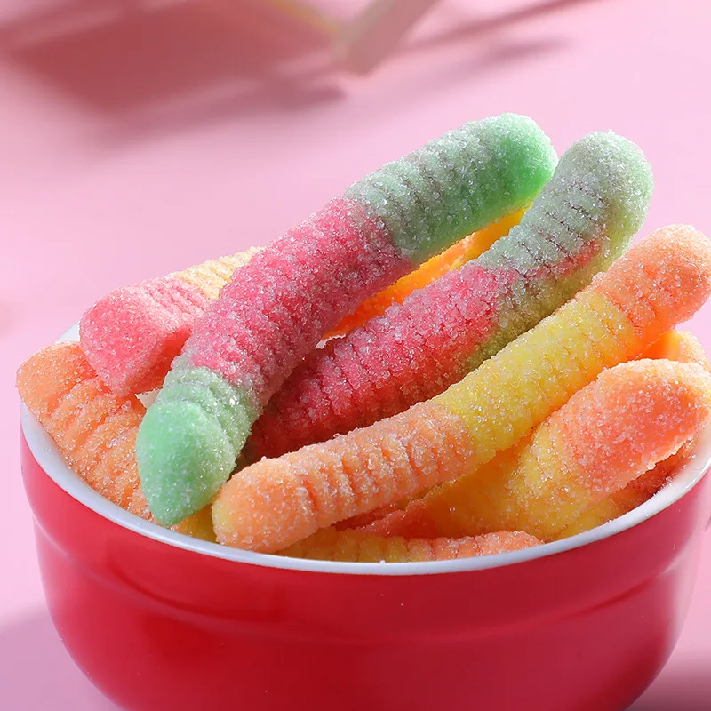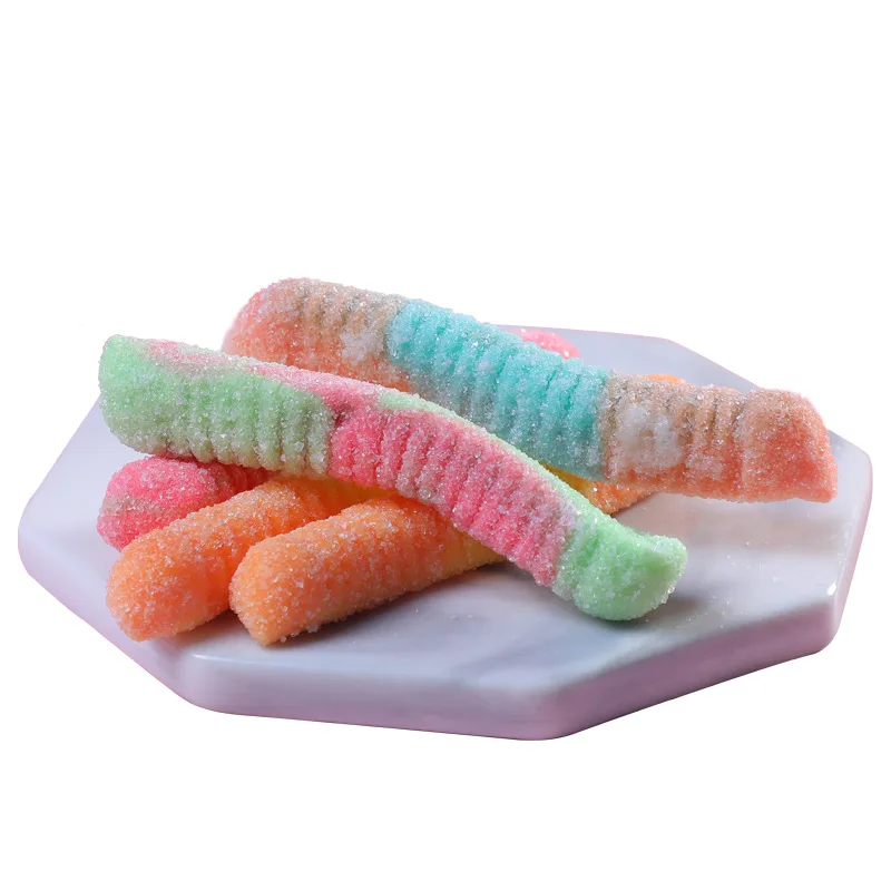 Mixed Flavor Acid Sand Worm Gummy Candy Fruity Gel Soft Candy with Cartoon Design