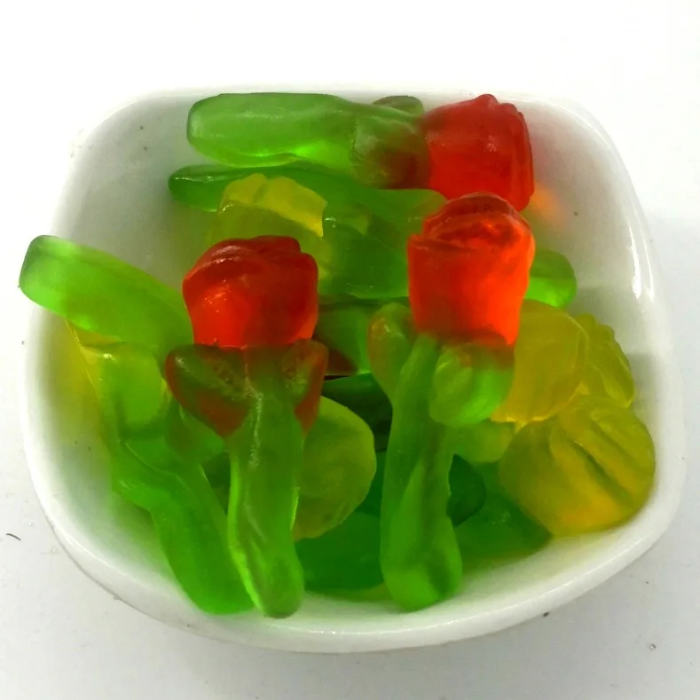 Rose Shaped Gummy Candy, Rose Colored Fruit Juice, Acorn Candy