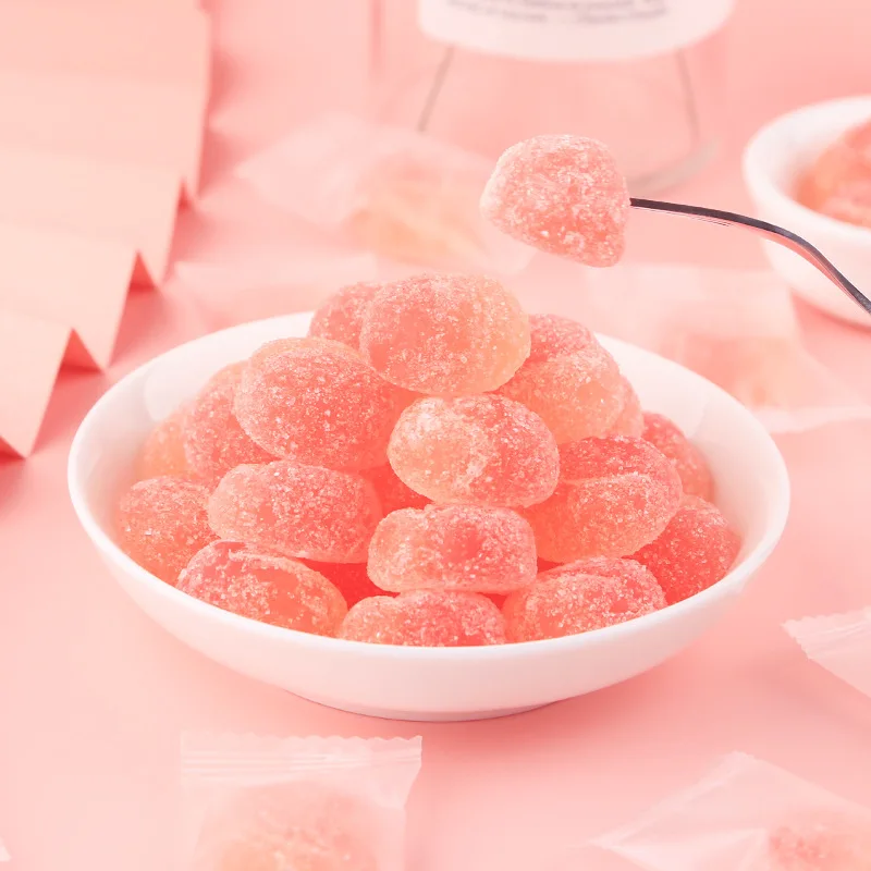 White Peach Flavored QQ Gummies, Loose Heart-shaped Mixed with Sugar
