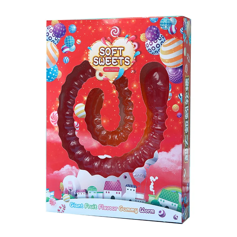 Earthworm Gummy Candy Gift Box Hard Fruit Flavored Candy with Sweet & Cartoon Pattern for Birthday & Halloween Gift