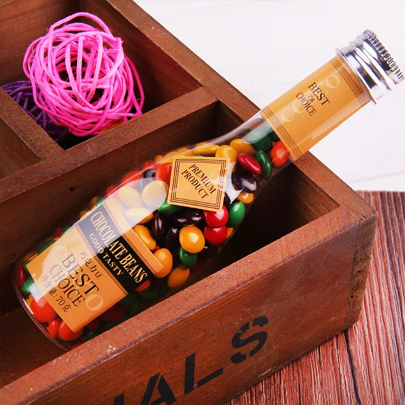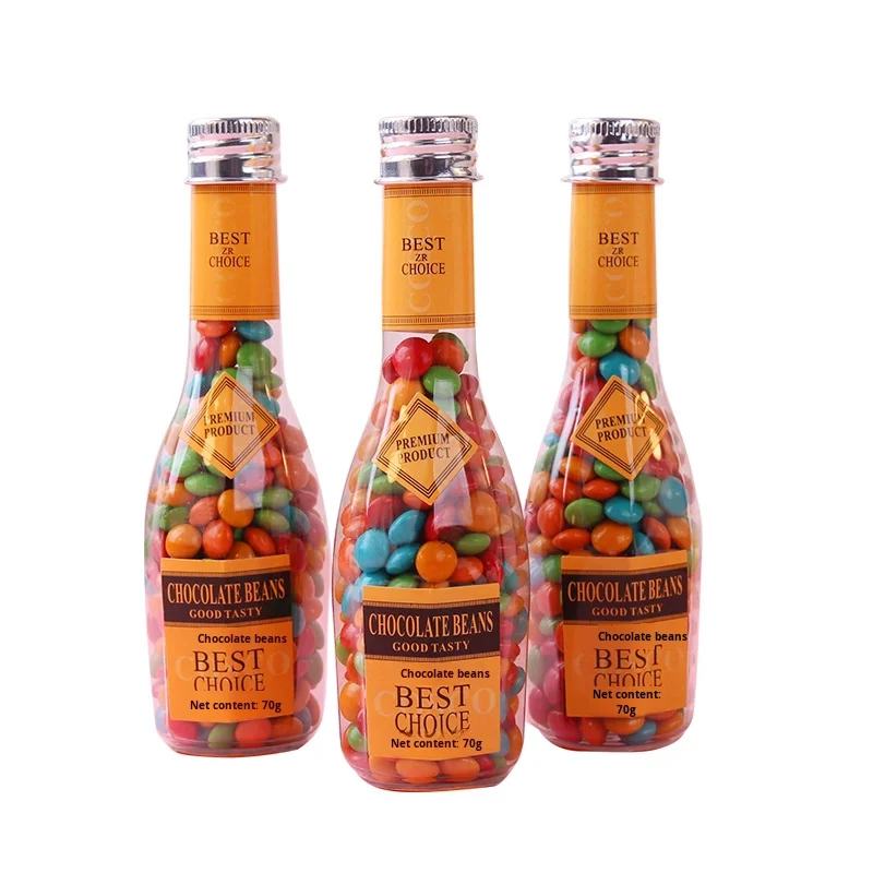 70g Long Bottle Colorful Candy Red Wedding Leisure Snacks Food Wine & Chocolate Beans Solid Biscuit & Beans Candy Wholesale