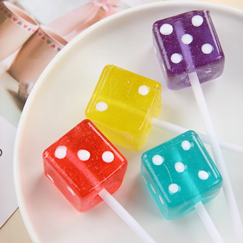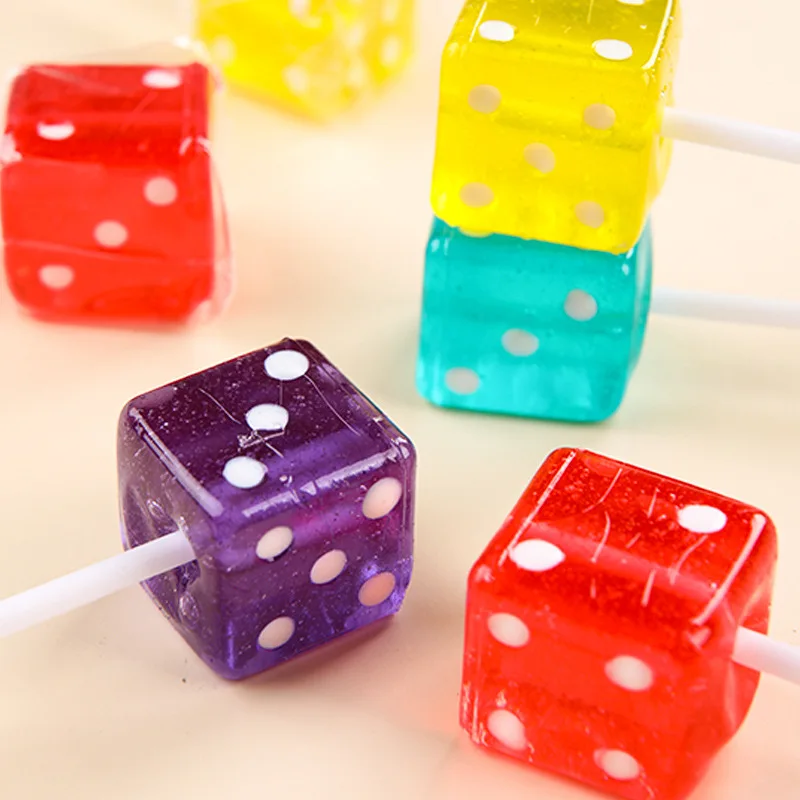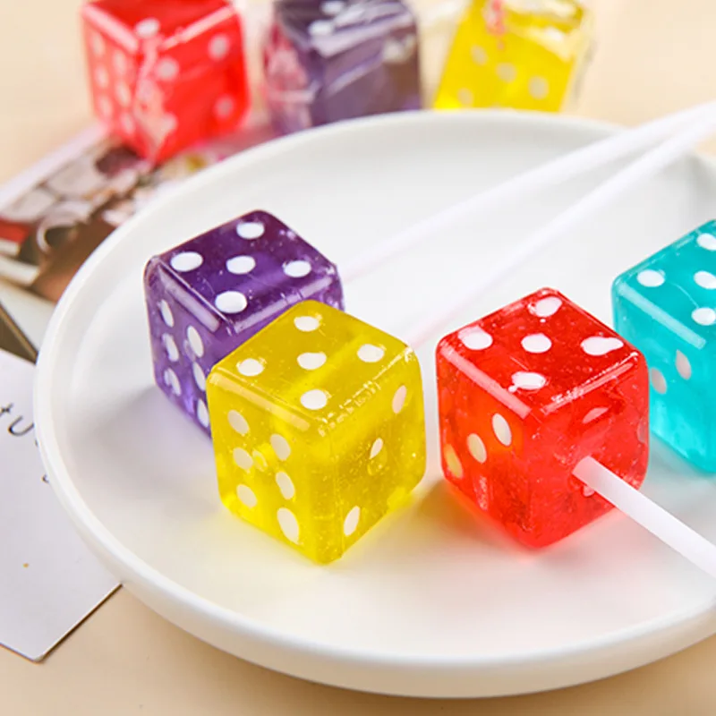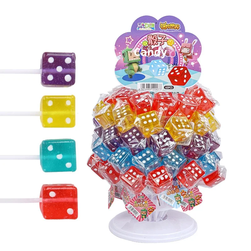 28g*60 Pieces Fruit Flavored Hard Sugar Tower Dice Coated Children's Sieve Lollipop Snacks Wholesale Candy in Bags