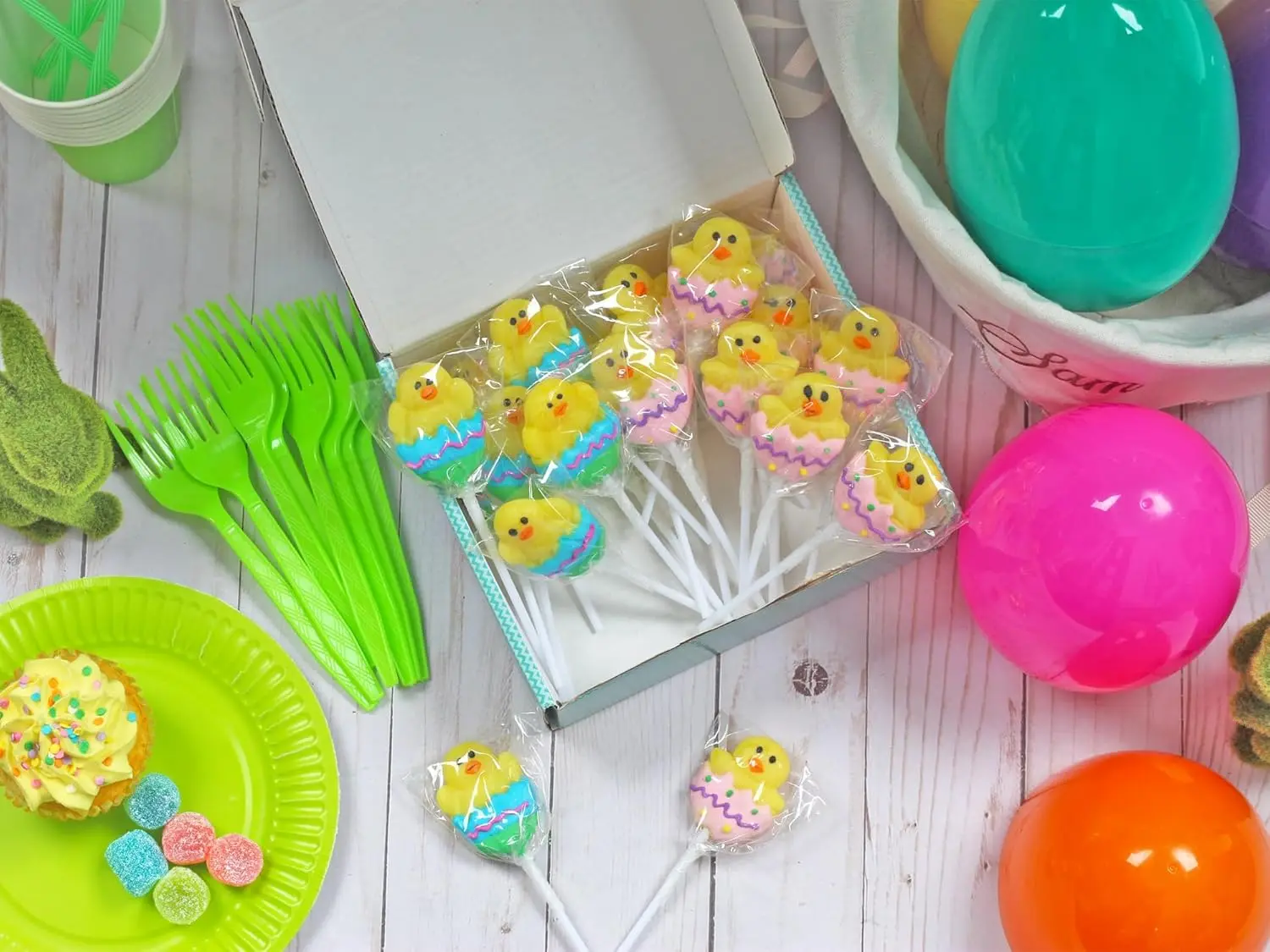 24 Individually Wrapped Hatching Chick Egg Lollipops Cute Easter Basket Stuffers Fruity Suckers for Egg Hunt Candy Dish Coated