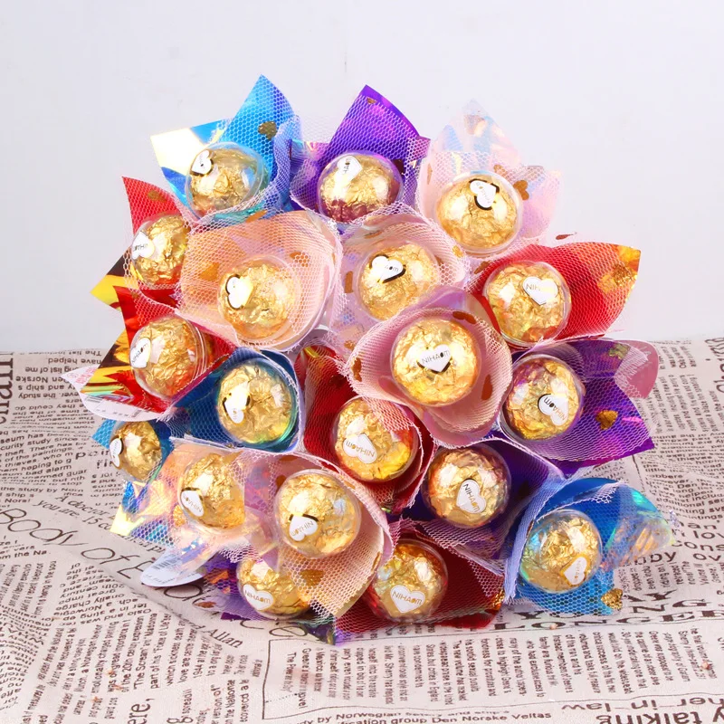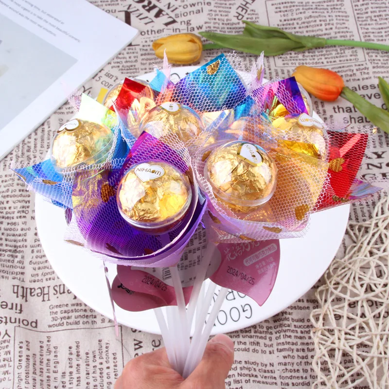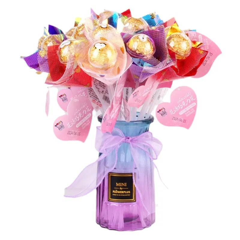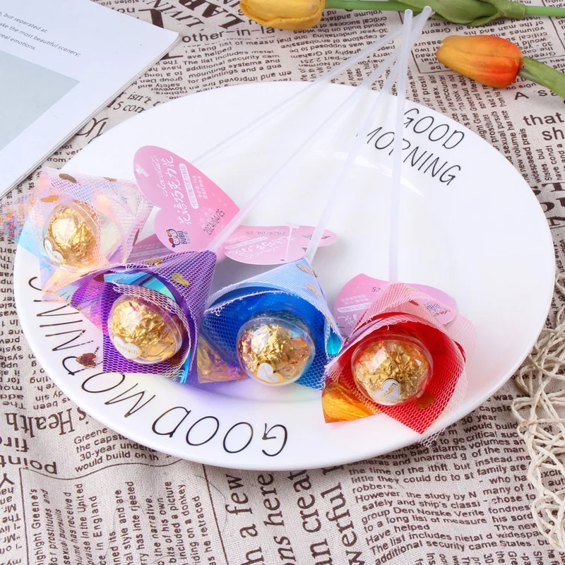 Wholesale 10g Long Stick Bouquet Chocolate for Wedding Valentine's Day Girls Snacks Solid Coffee Flavor with Biscuit Ingredient