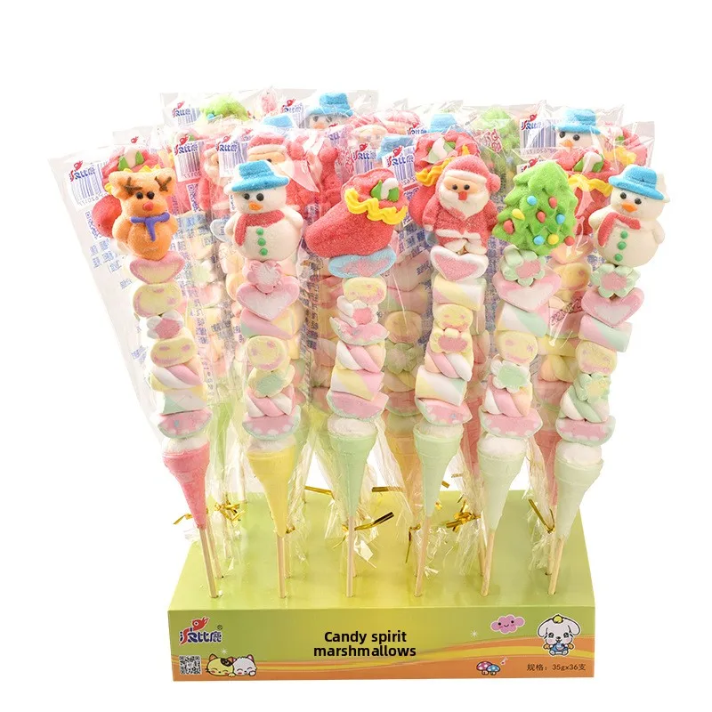 Marshmallow Cartoon Christmas Lollipop Soft Candy Candied Hawthorn Skewers Sweet Flavored Mixed Snacks for Kids
