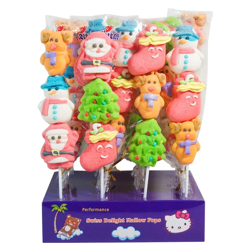 Internet-Famous Christmas Design Cartoon Lollipop Soft Candy Marshmallow Skewer Candied Hawthorn Whole Box for Children's Reward