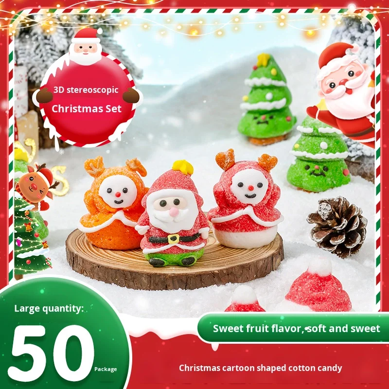 Children's Christmas Cotton Candy Gift Cartoon Pattern Marshmallow with Fruity Flavour for Decorations Manufacturer Wholesale