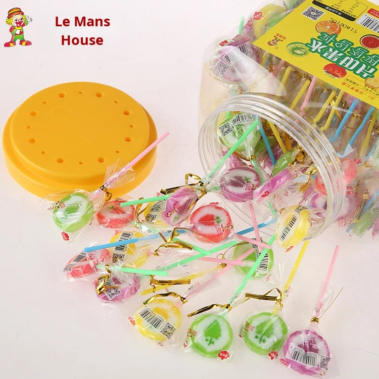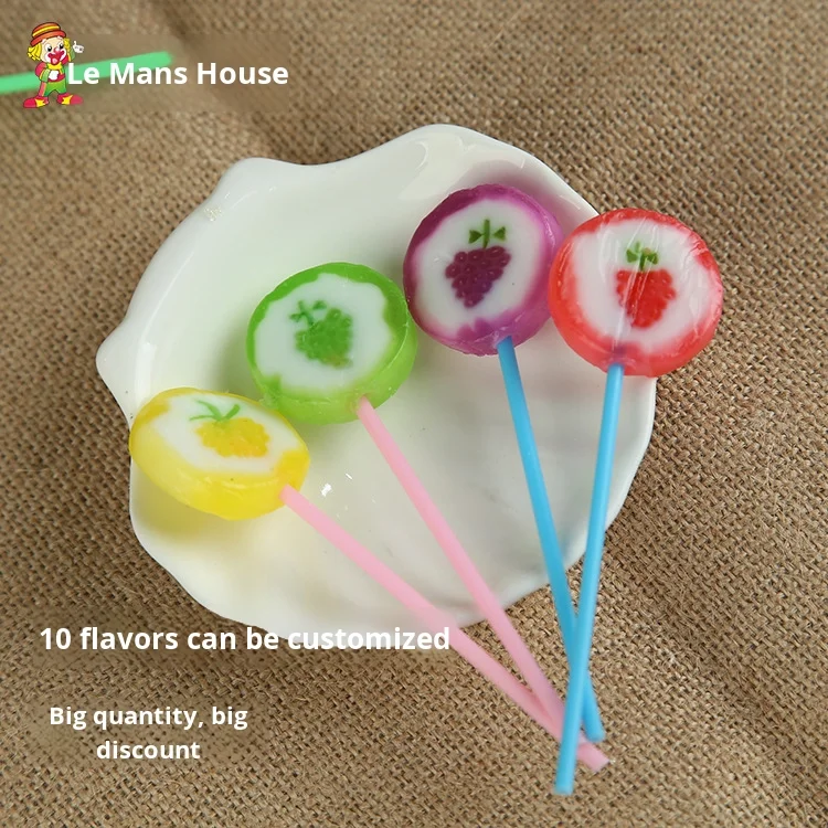 Handmade Sliced Lollipops Hard Candy Fruity Flavored Short Stick Packaged in Bottles with Coating for Decoration