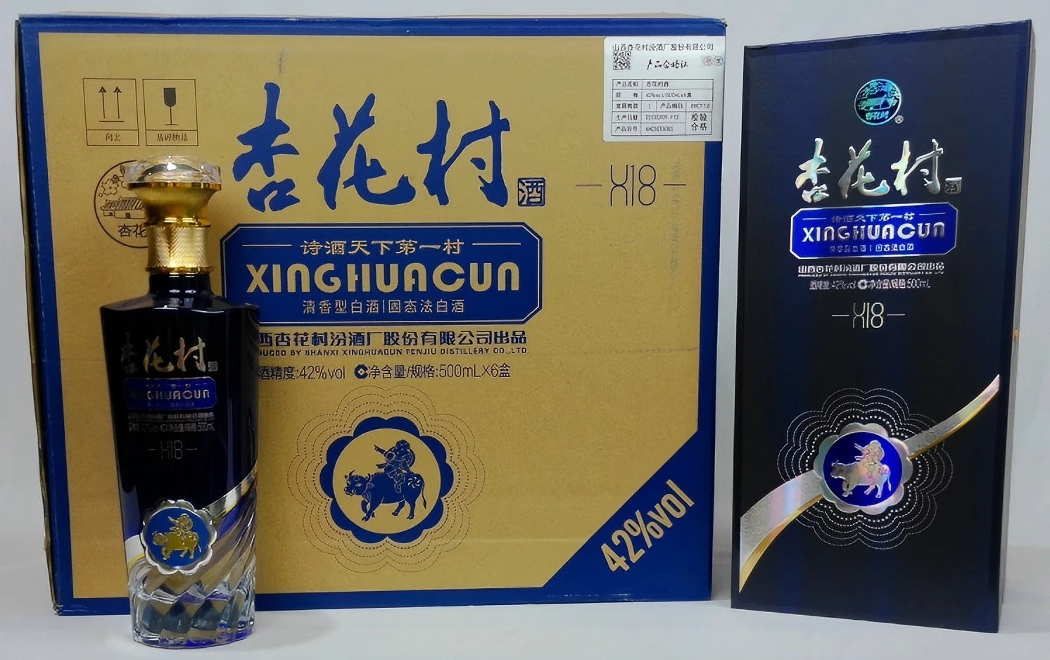 Xinghua Village Liquor Xinghuacun Blue Sovereign Noble 42 500ml Premium Solid-State Fermented Chinese Baijiu by Fenjiu